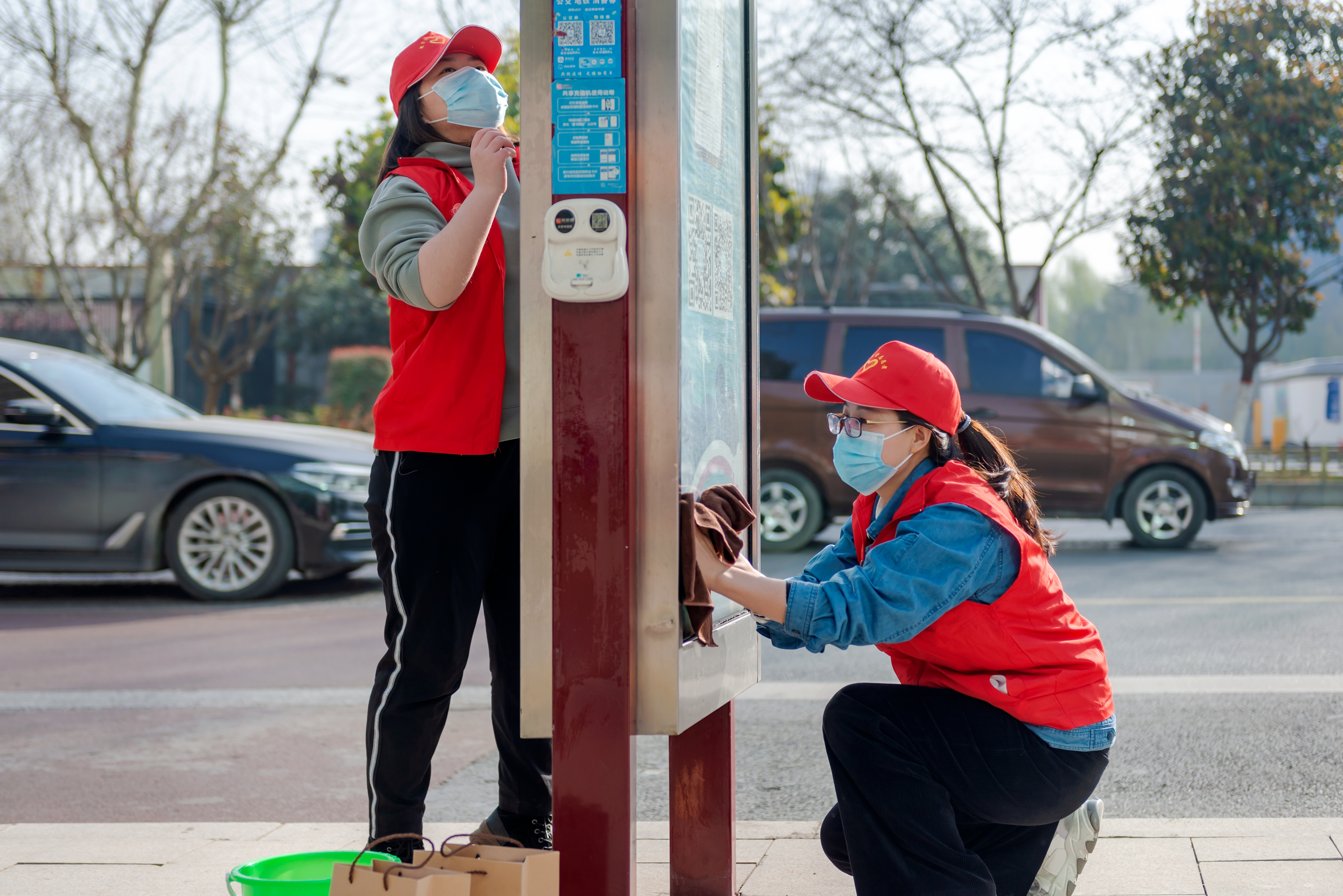 一大早,志愿者们来到未央路街头,在环卫工人的引导下,根据分工拿起水桶、擦洗器、抹布等工具忙碌起来,清扫垃圾、捡拾烟头,细心擦洗公交站牌、天桥护栏、宣传栏等公共设施,并将违规停放的共享单车整理移放到规定区域……一抹抹“志愿红”和“环卫橙”绘成了一道靓丽的街头风景线。