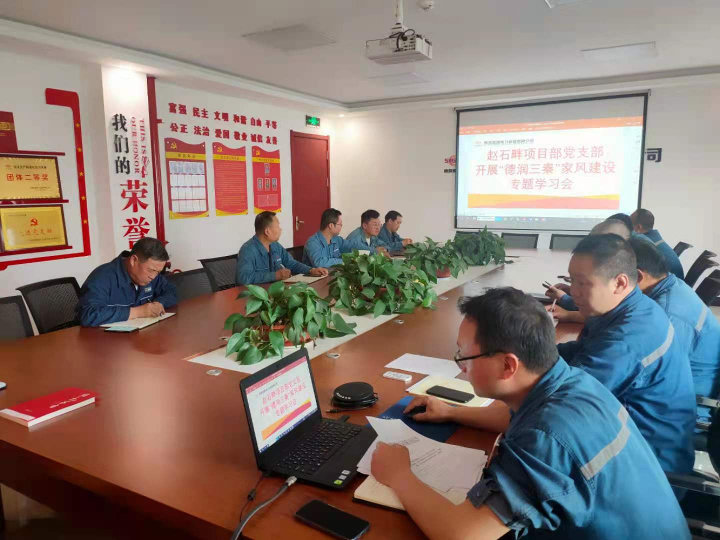 6月22日,赵石畔党支部召集管理人员开展“德润三秦”家风建设学习会。