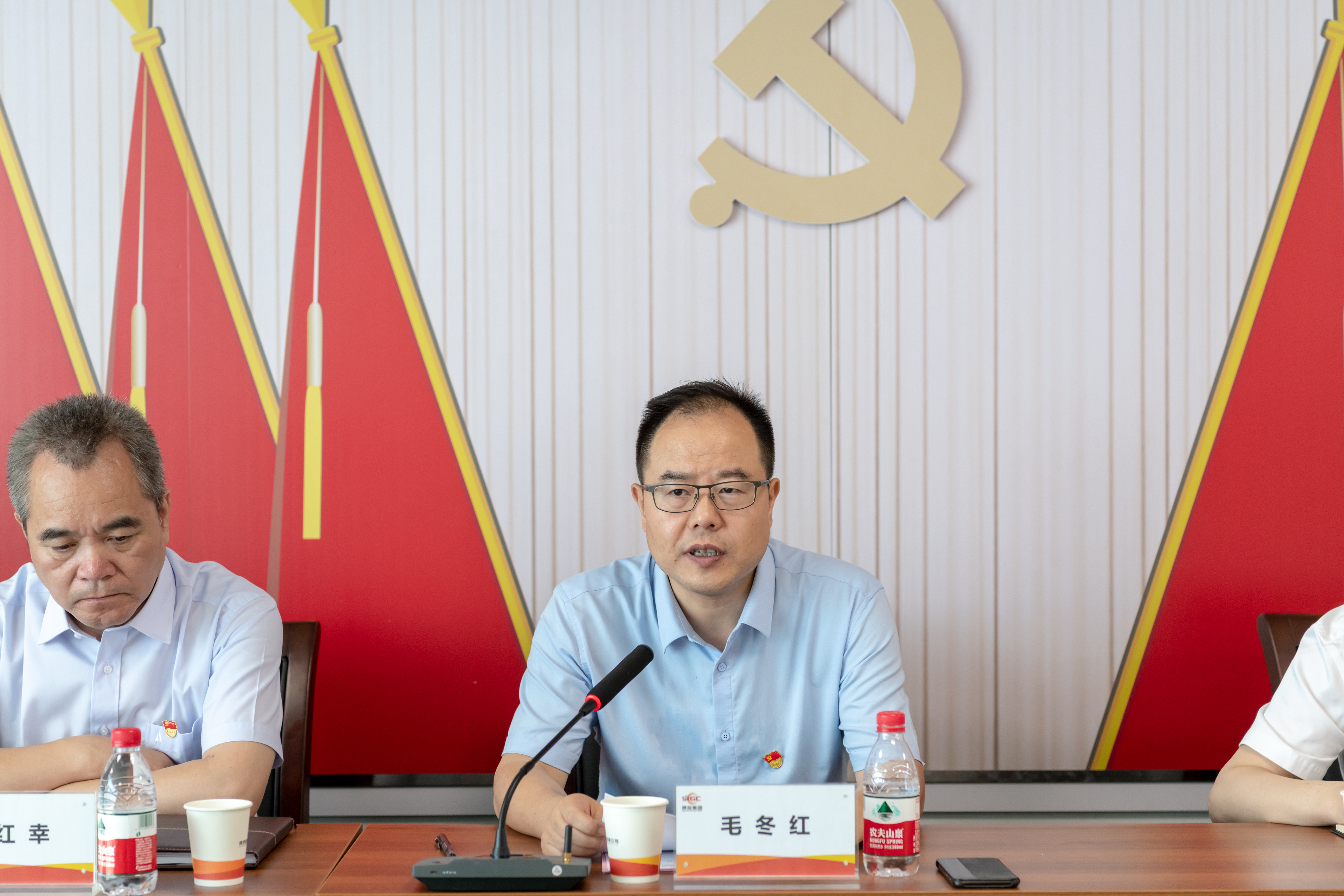 大会在全场党员干部职工齐唱《中华人民共和国国歌》中拉开帷幕。面对鲜红的党旗,公司党委书记、董事长毛冬红带领全体与会党员重温入党誓词,回顾对党和人民的承诺,表达对党的无限忠诚。