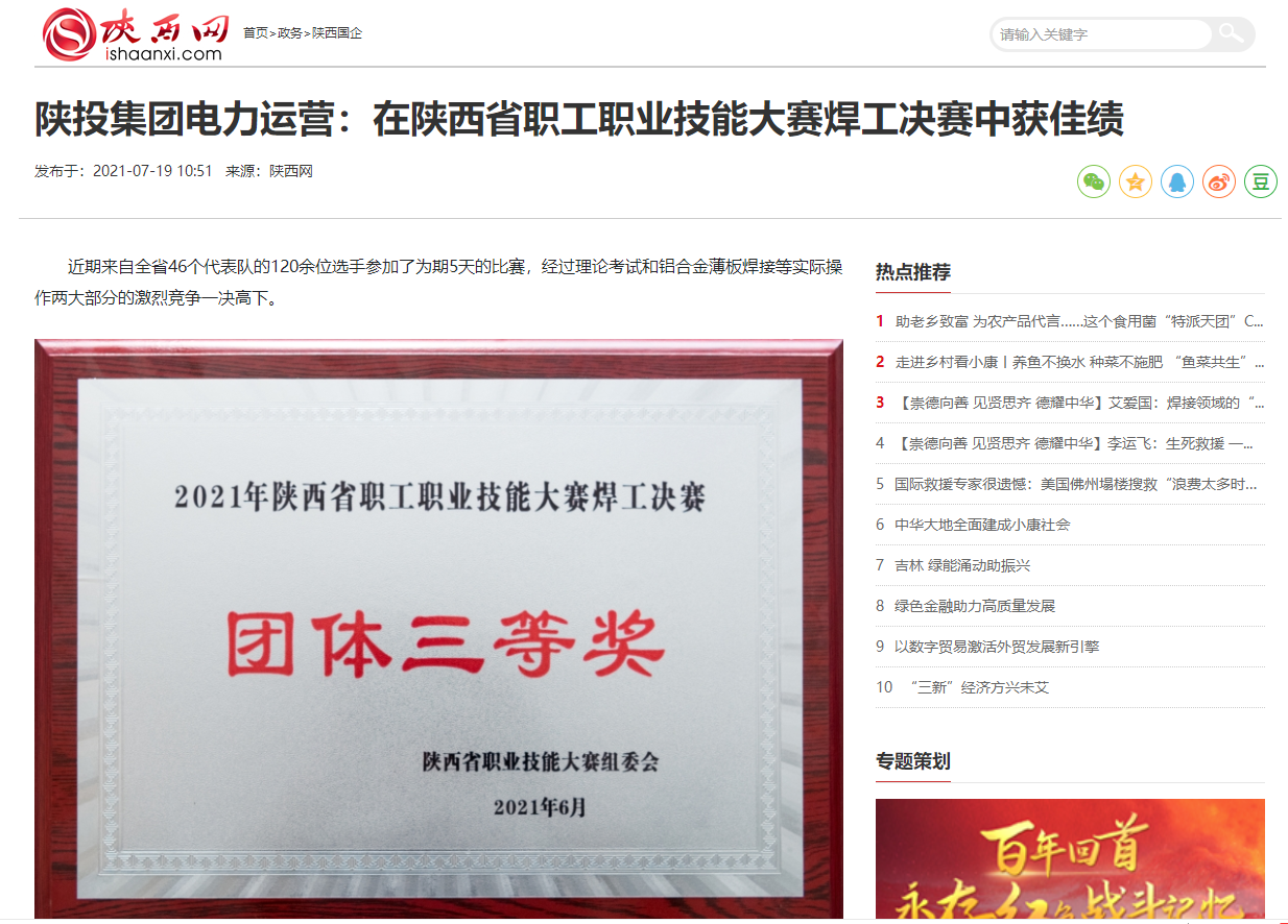 近日,由电力运营员工雷震、步阿朋和吉木萨尔发电员工潘奎组成的陕投集团工会代表队在“2021年陕西省职工职业技能大赛焊工决赛”荣获团体三等奖的佳绩。电力运营公司员工雷震、龚涛分别荣获个人三等奖及优秀裁判员荣誉称号。此次比赛是公司首次参加省级职业技能大赛焊工决赛。