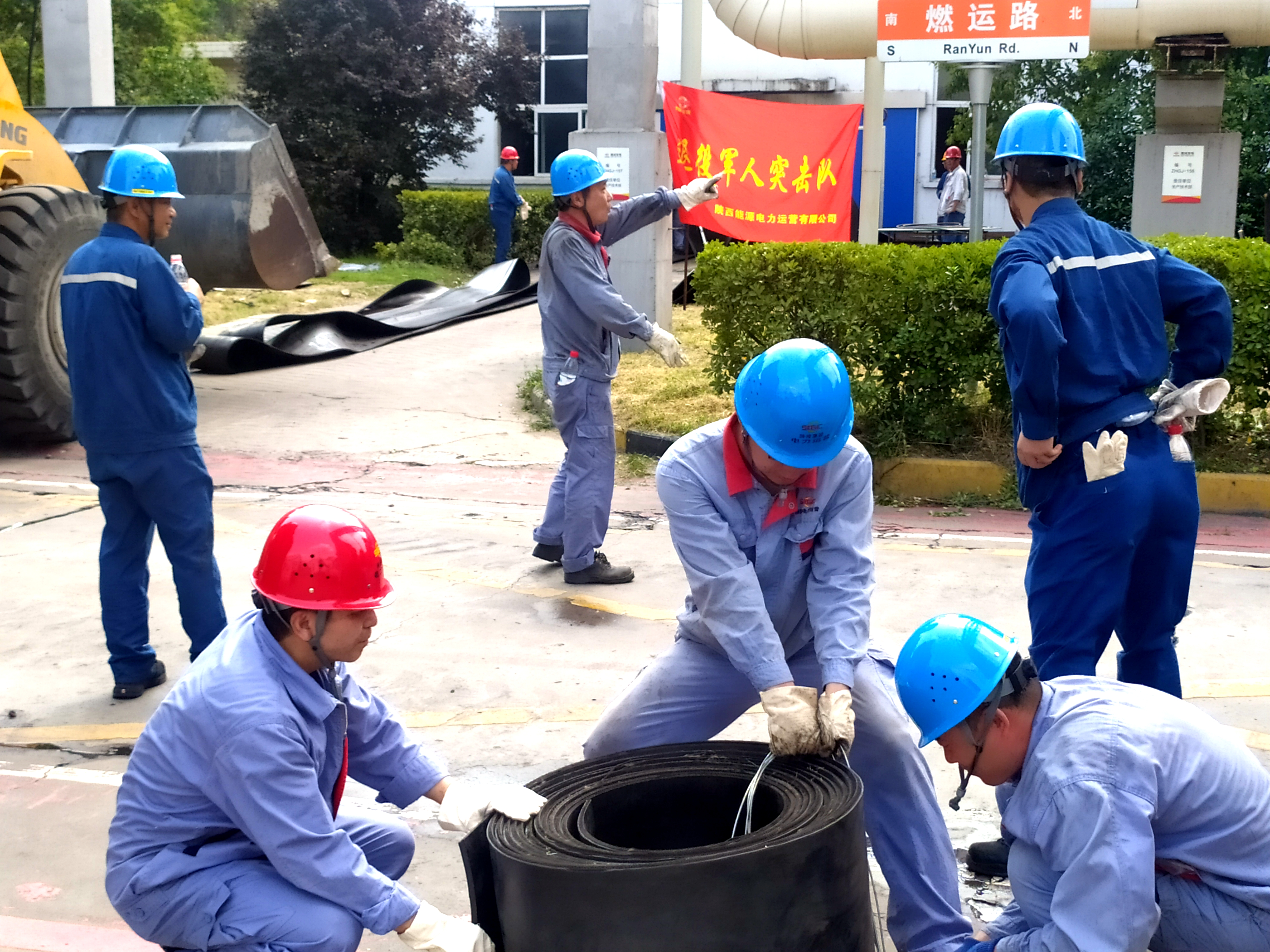 此次需要更换的皮带宽1.2米,厚0.1米,重达7吨,任务之艰巨,工作量之大,为公司成立以来所未有。抢修现场,借助动力机械,工作人员从皮带机的一边先将皮带一寸一寸、一尺一尺拉拽出来。这时,严阵以待的突击队员就冲上前各司其职,一组切割,一组搬运,一组捆扎。
