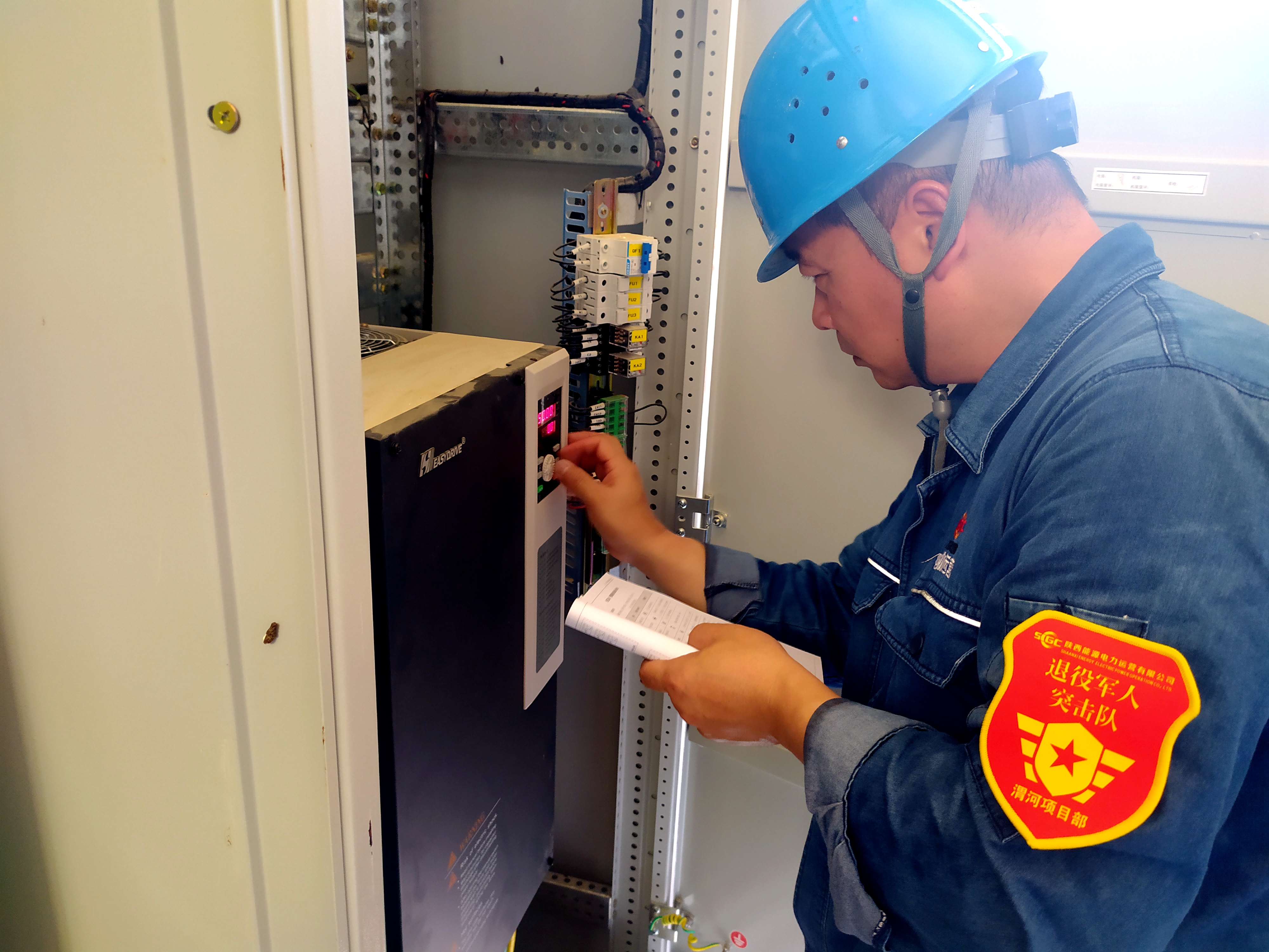 8月21日清早,一接到抢修任务,王书龙带领10名业务骨干驱车200公里赶往白水县首居村,和村委、集团驻村工作队进行了对接。得知村里的多处路灯也出现故障,严重影响到了村人夜间出行。突击队立即调整工作方案,将现有人员分为两个突击小队,全力投入抢修工作。