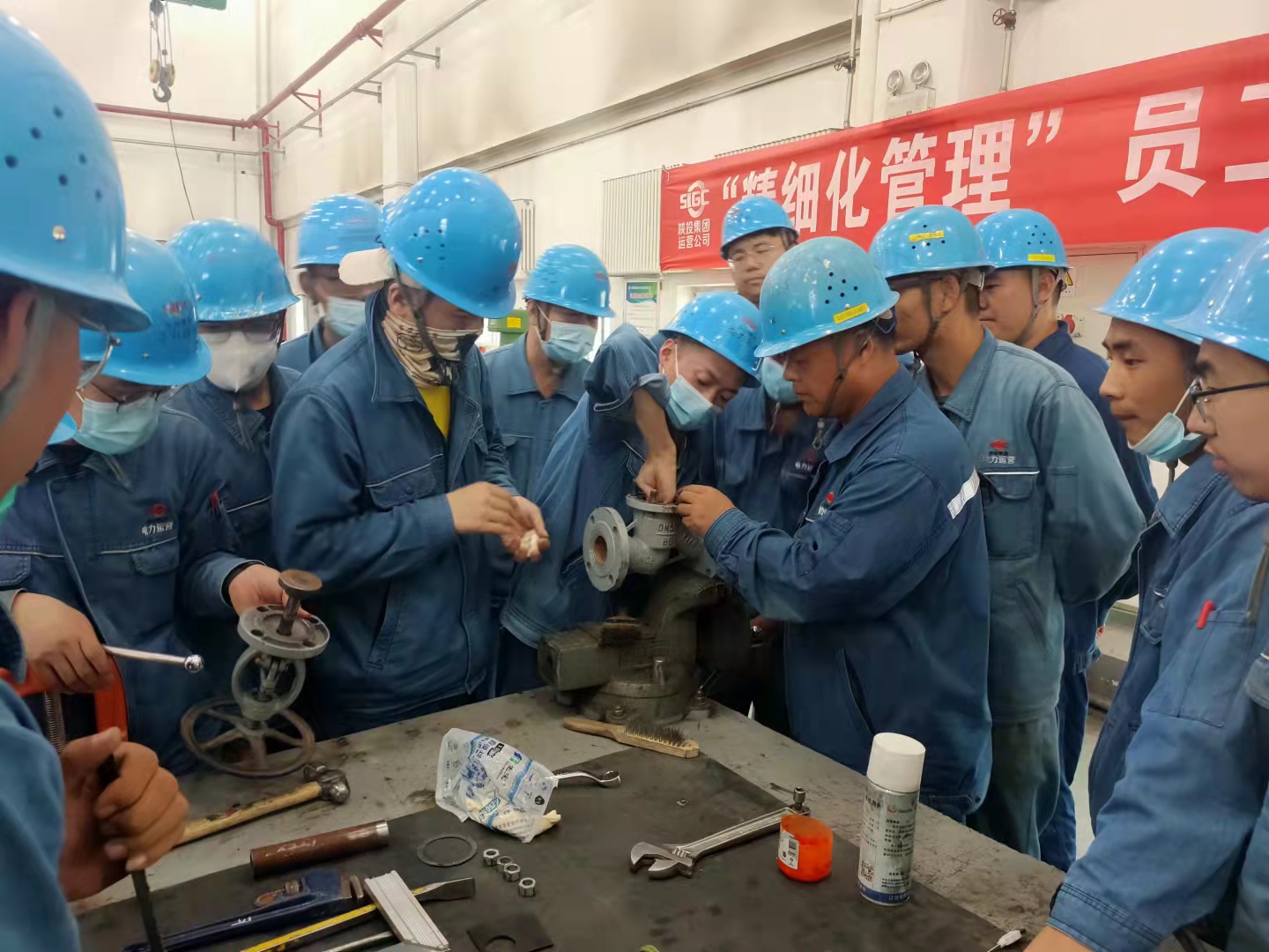 5月份以来,赵石畔项目部坚持每周两次理论与实操培训,提升全员业务技能水平。钱宏彰不仅是培训的受益者,也是汽化水班老师傅的“接班人”。班里有好几位工龄超过30年的技术能手,有“泵王”之称的樊长钰师傅,也有擅长检修及安装管道阀门的李平安和万东新师傅,还有汽轮机主机专家晏诚,他们将拿手技艺倾囊相授,让青工们受益匪浅。钱宏彰自己也说:“我的成绩,李平安和纪鸿儒两位师傅功不可没。”