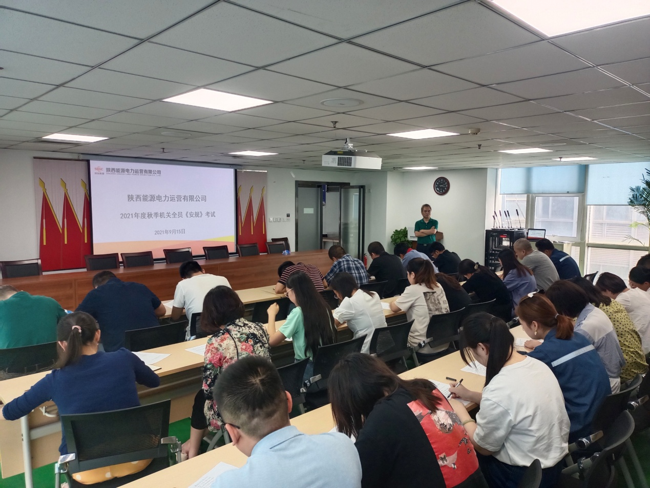 为进一步落实企业安全生产主体责任,加强公司安全教育培训,全面提高员工安全生产意识,9月15日,公司举行了2021年度秋季《安规》考试。公司副总经理武红幸、李旭昌分别在机关考场、商洛项目部考场监考。