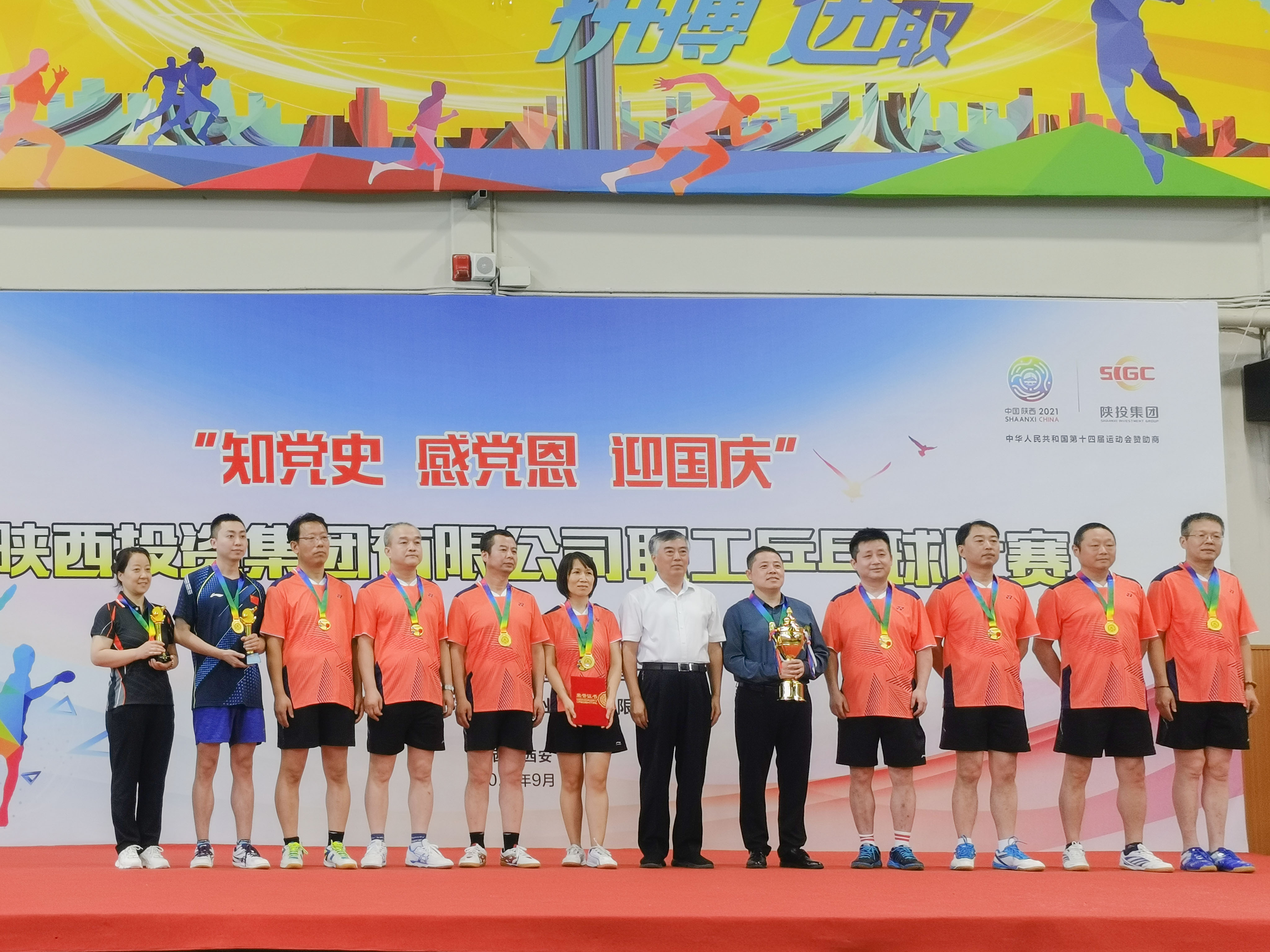 9月30日,集团公司工会举办的“知党史、感党恩、迎国庆”职工乒乓球比赛在金信实业职工运动中心落下帷幕。由工会主席韩宏友担任领队的公司乒乓球队经过顽强拼搏,一路所向披靡杀进决赛,从集团系统26支队伍中脱颖而出,取得混合团体冠军!