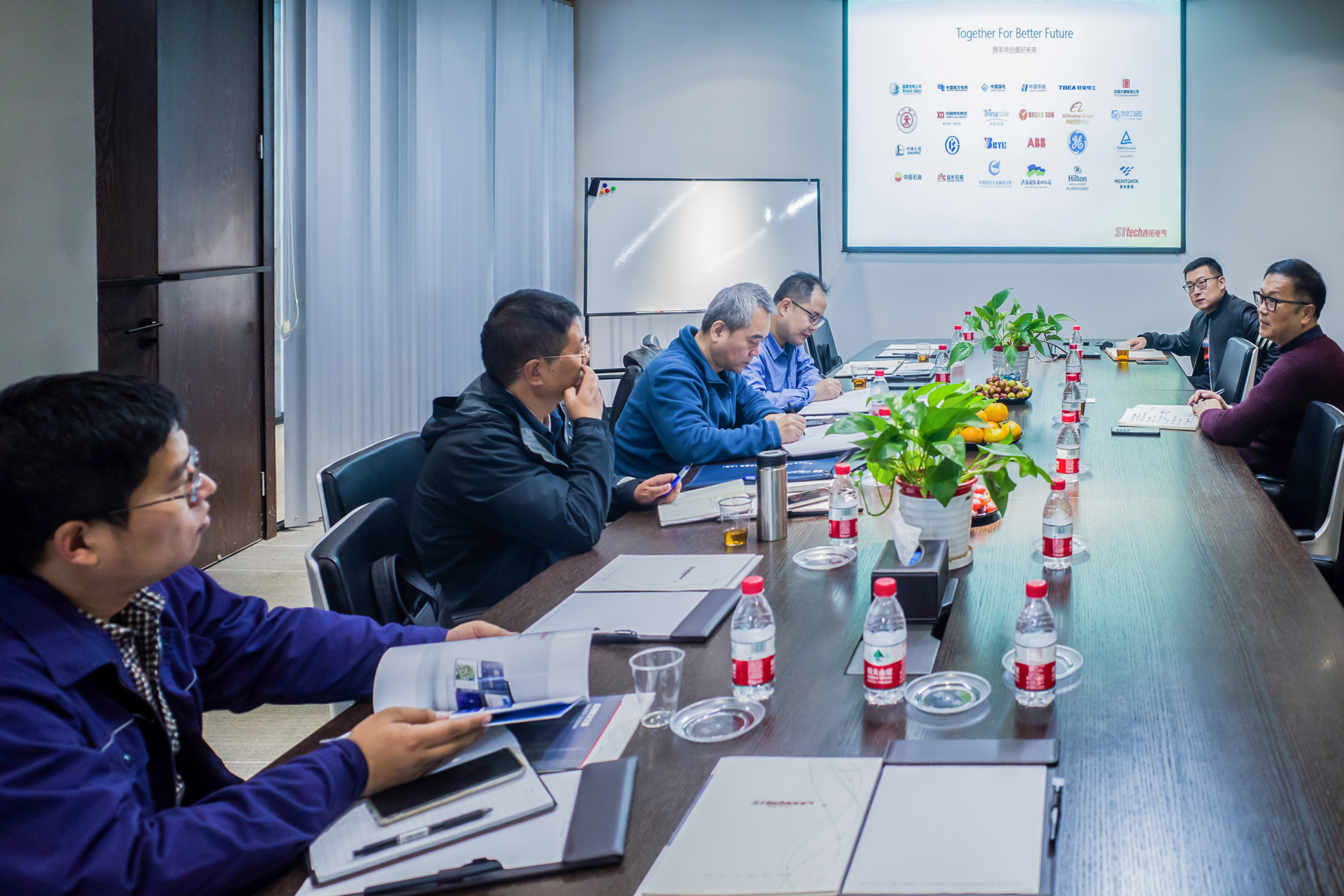11月3日,公司党委书记、董事长毛冬红,副总经理武红幸,君创科技及新能源事业部一行赴西安西拓电气股份有限公司交流座谈。