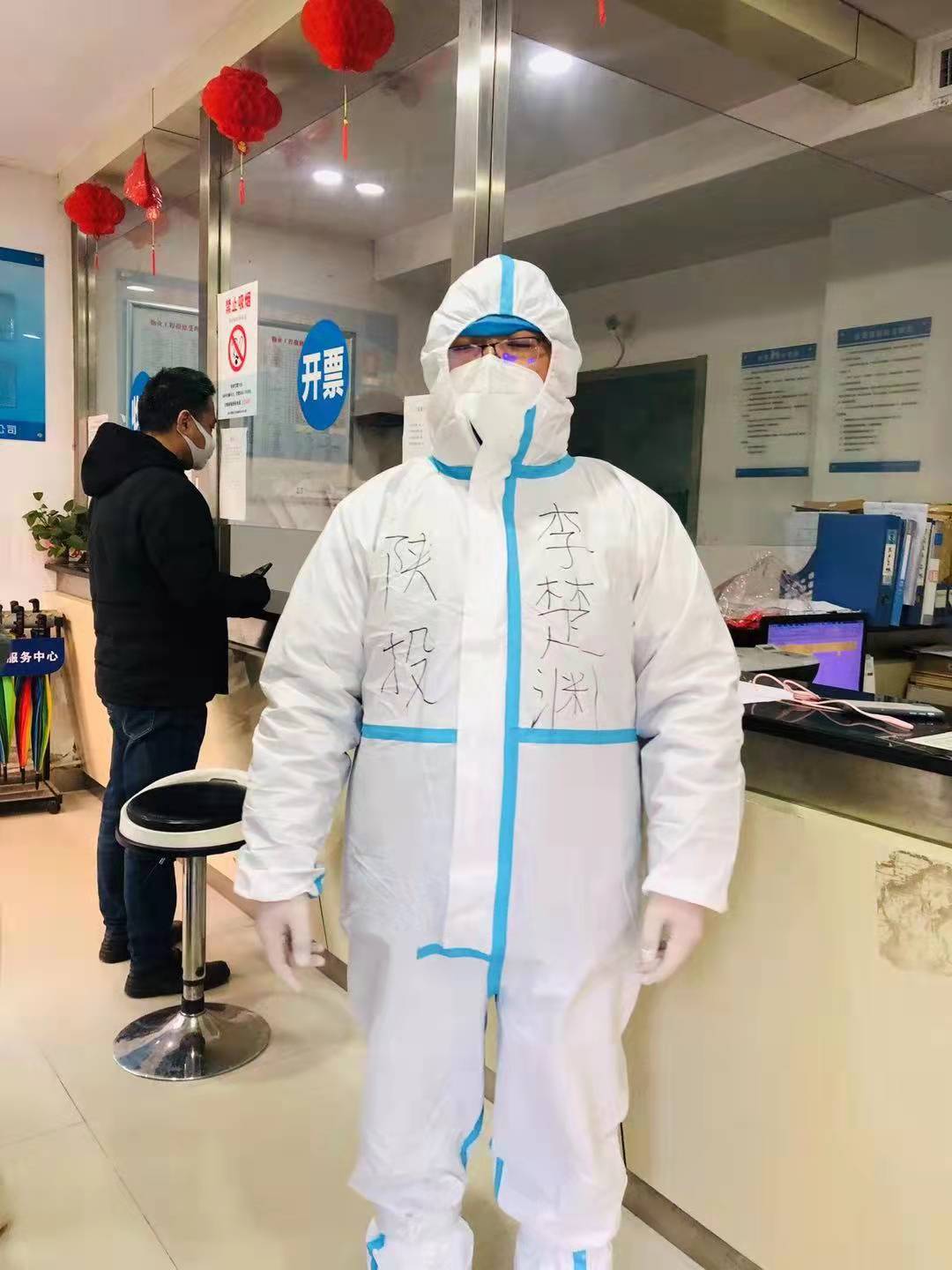 “疫情就是命令,防控就是号角。”12月29日一大早,公司志愿者迅速投入到疫情防控工作中。由于样本采集过程存在风险,志愿者们层层防护,隔离服、N95口罩、一次性帽子、面屏等等全副武装。据李楚渊介绍,为了节约防护物资,他们会尽量少喝水少如厕。每次爬楼梯时,防护面罩上会产生很多雾气,只能勉强看到前面的路,脱下防护服时往往浑身汗湿。他说:“之前都是在新闻里看到医务人员辛苦,这次切实体会到他们的不易。我既然选择了做志愿者,就要为战胜疫情尽一份力。”