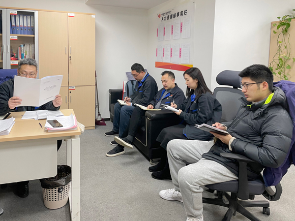 2月18日,赵石畔项目部组织管理干部以及青年员工传达学习公司“三会”精神。会议要求,项目部全员要努力提高技能水平,树牢市场思维和客户意识,提供标准、提高质量,在履职尽责中担当作为,在服务业主、服务客户中提质增效,为业主创造价值、与业主共同成长。
