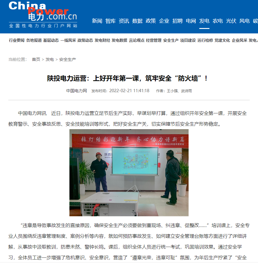 近日,陕投电力运营立足节后生产实际,早谋划早打算,通过组织开年安全第一课,开展安全教育警示、安全事故反思、安全技能培训等形式,把好安全生产关,切实保障节后安全生产形势稳定。