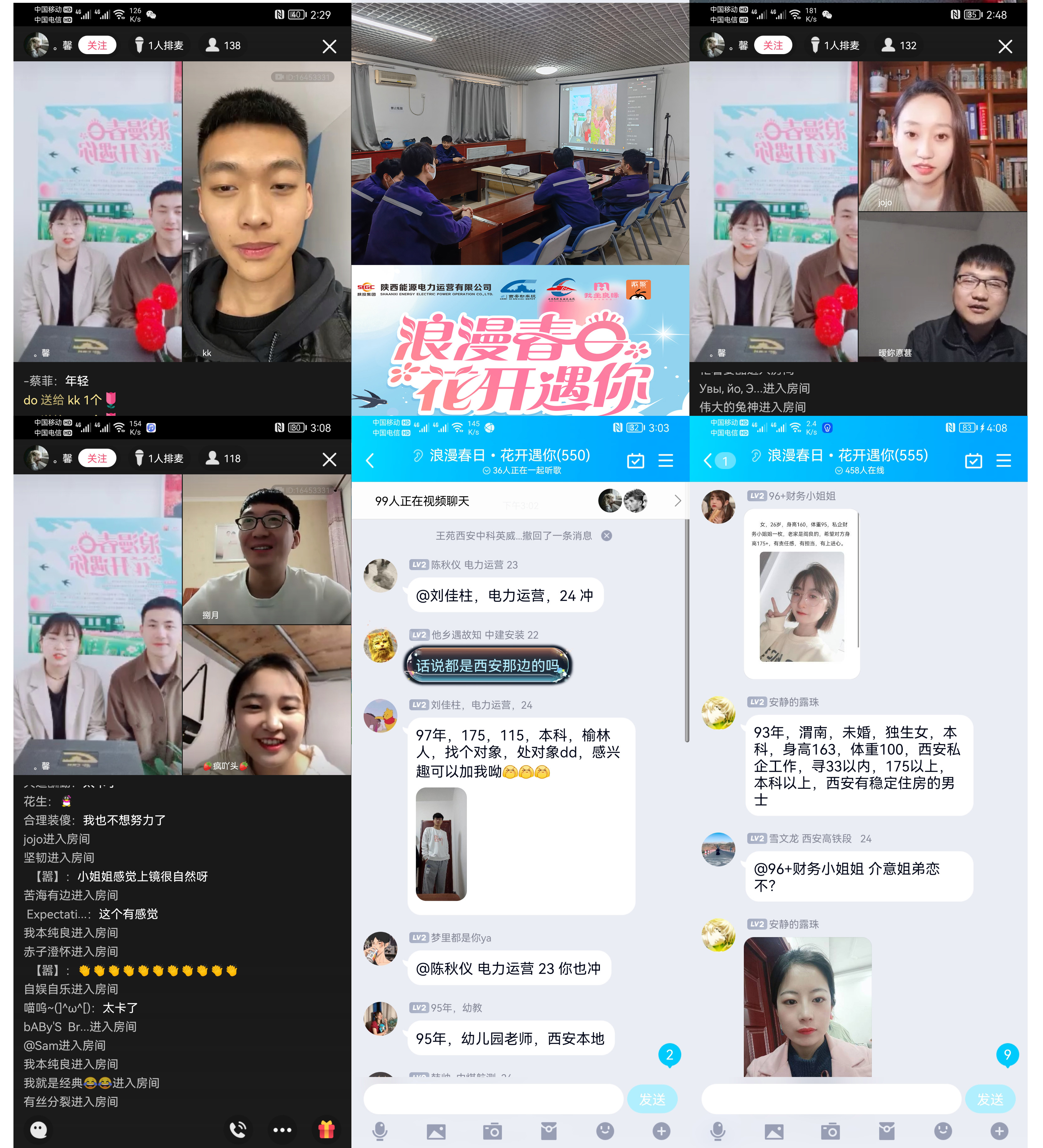 3月19日,电力运营公司团委联合中铁局西安动车段团委和基础设施段团委开展了“浪漫春日·花开遇你”线上联谊交友活动,帮助单身青年职工拓宽交友渠道,搭建良好交流平台。活动邀请了陕西省科技厅、中科院光机所、集团系统单位人民大厦、清水川能源等20余家企事业单位共550余名单身青年参加。