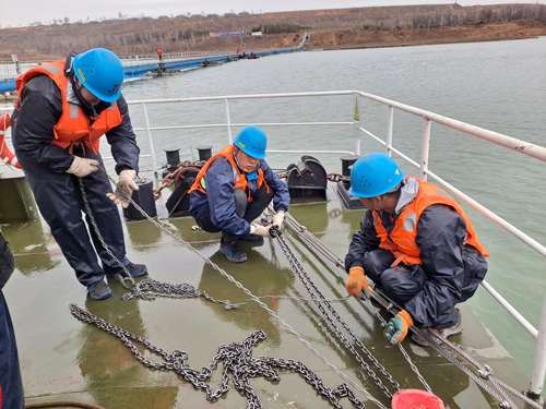 在这样恶劣的自然环境下,大家没有一句怨言,只有一个信念,就是尽快将水源线恢复正常,保障业主方机组安全稳定运行。凭着运营人的冲劲和强烈的责任感,配合业主方顺利完成3号浮箱起吊、取水管线调平的抢修任务,圆满完成此次水源地泵船取水管线抢修工作。