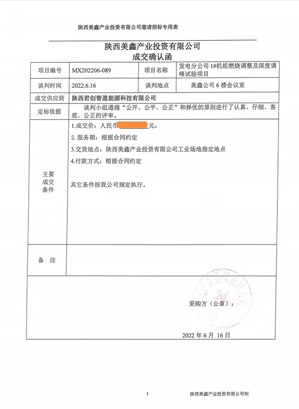 日前,君创科技中标陕西美鑫产业投资有限公司发电分公司1#机组燃烧调整及深度调峰试验项目,标志着君创科技燃烧优化调整类试验实现了零的突破!