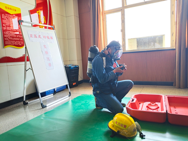 比赛开始,各代表队展开激烈角逐。选手踊跃作答,评委犀利点评。抢答环节跌宕起伏、扣人心弦,将现场气氛推向了高潮。正压式空气呼吸器实操比赛,渭河项目部戚华康一气呵成,25秒完成正压式空气呼吸器佩戴全过程,赢得了全场热烈的掌声。