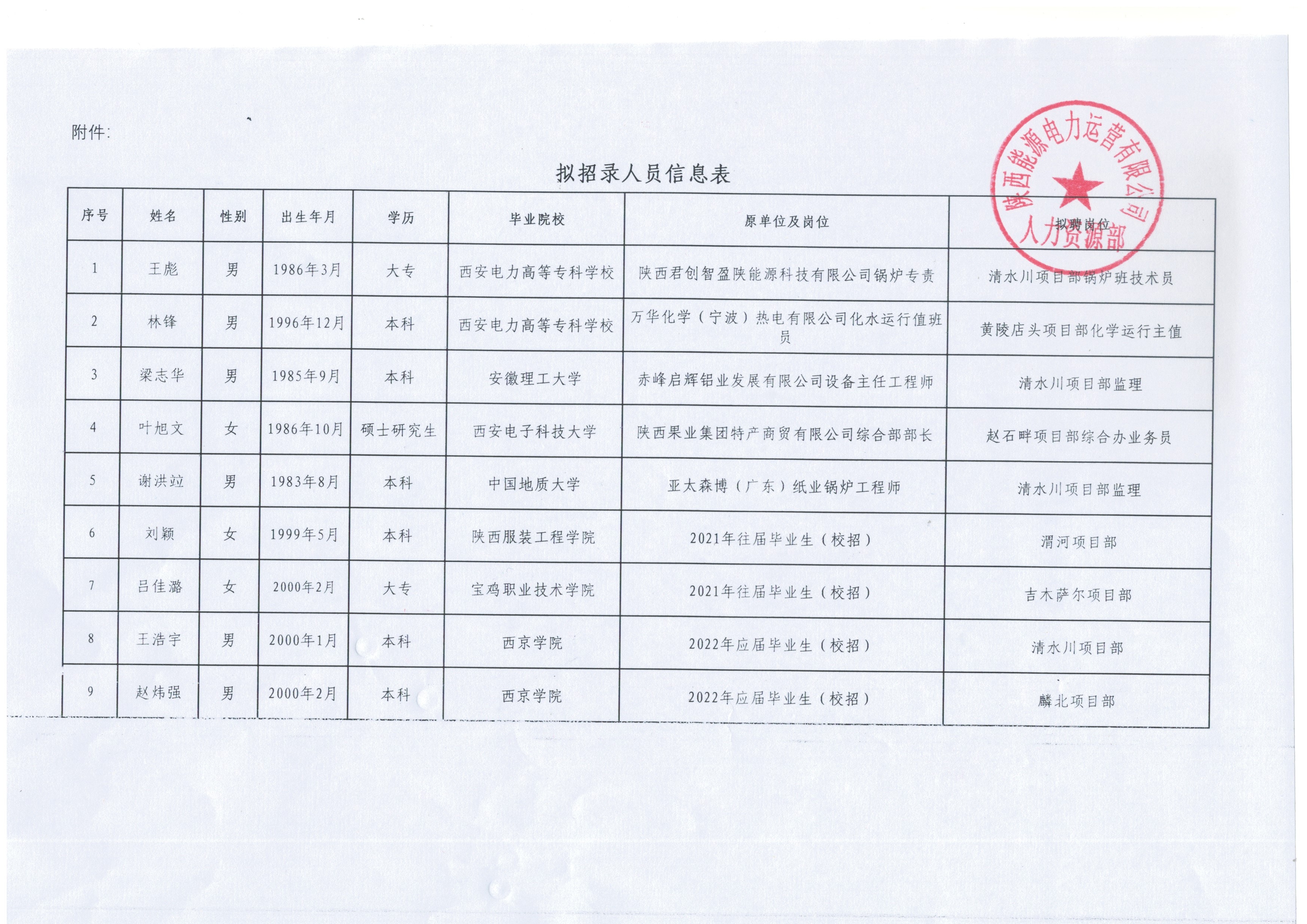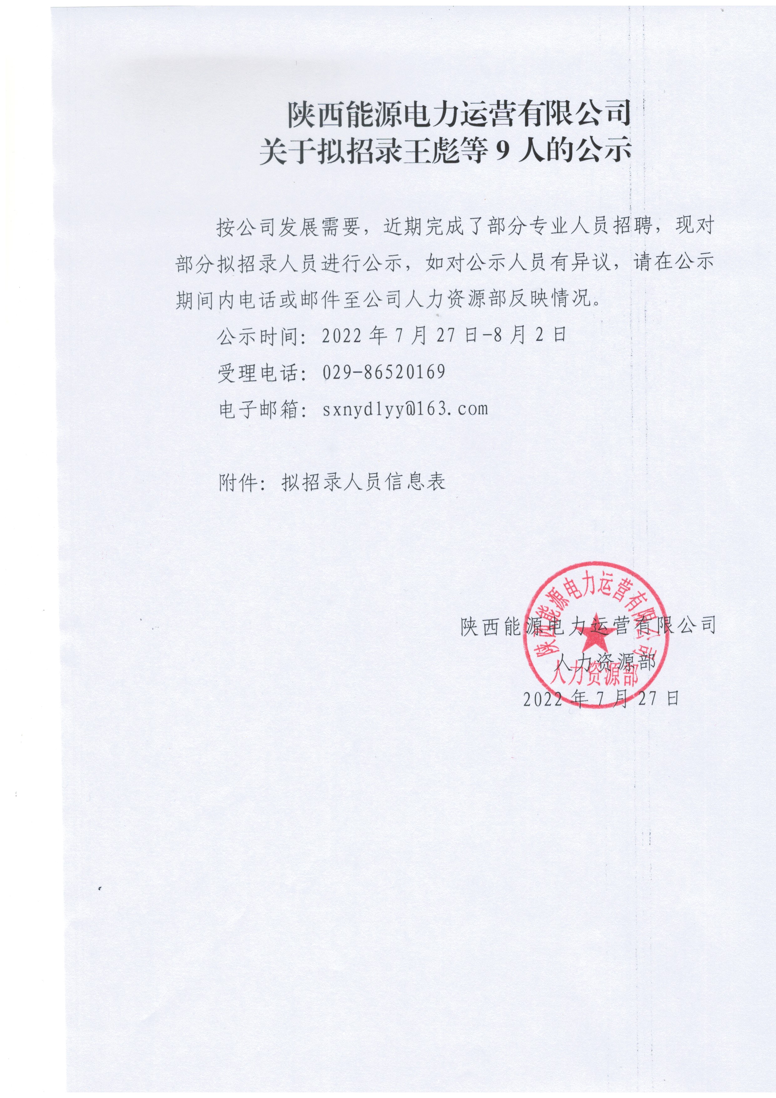 关于拟招录王彪等9人的公示