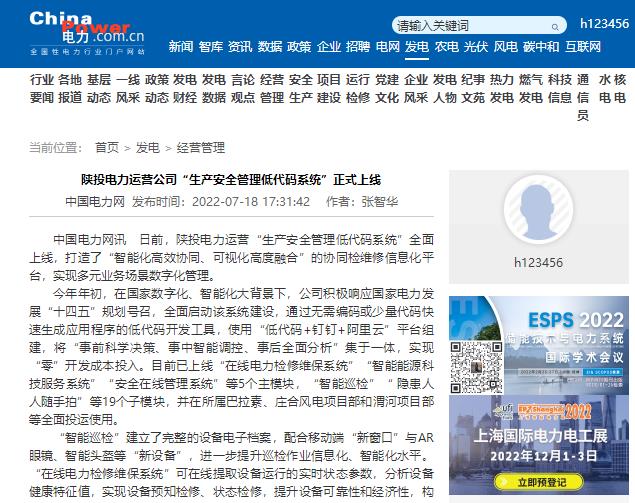 近日,陕投电力运营“生产安全管理低代码系统”全面上线,打造了“智能化高效协同、可视化高度融合”的协同检维修信息化平台,实现多元业务场景数字化管理。