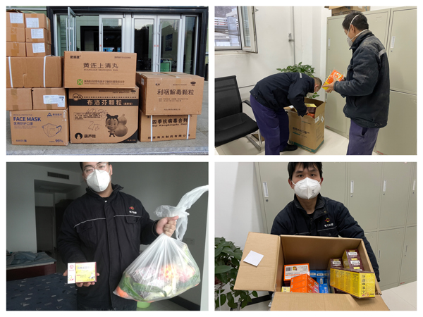 各党支部想方设法紧急筹措N95口罩、退烧药品、抗原试剂、消毒液等物资,发放到全体员工手中,为全员安全健康增添“防护网”。对确定阳性人员及出现发热症状的职工按照管控要求进行隔离,建立人员统计手册,安排专人送药送餐,定时沟通做好信息反馈,随时关注员工身心状况。通过工作群、微信等渠道宣传防疫指南,提供“面对面”的云端服务,让员工安心做好个人防疫。水果、红糖水、柠檬茶……“最暖健康套餐”让员工在特殊时期心里有归属、口中有营养。部分紧缺防疫物资,由经营管理部多方协调一并采购,目前已通过快递发往各项目部,为一线生产人员助一臂之力。