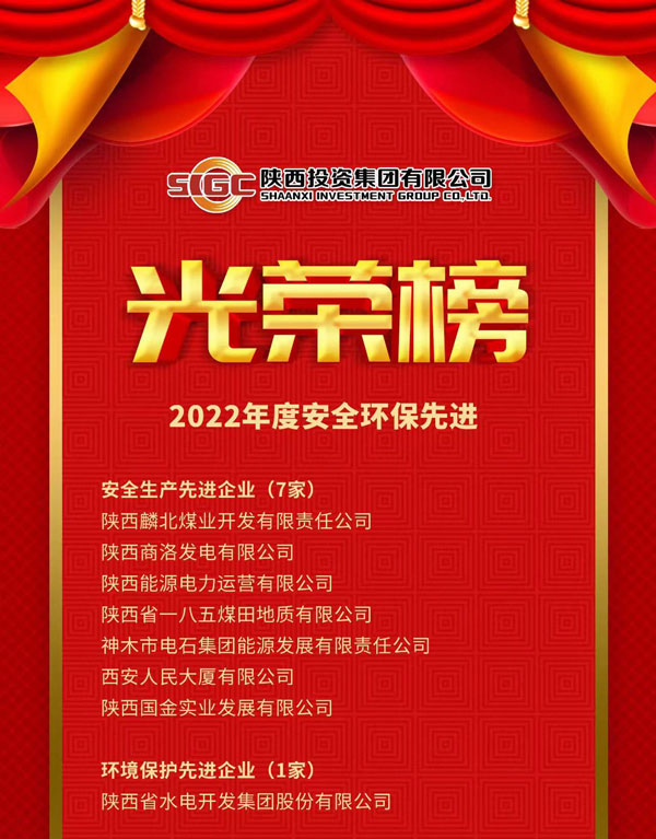 1月9日,公司荣获陕投集团“2022年度安全生产先进企业”荣誉称号。