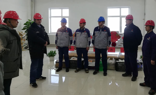 吉木萨尔发电总经理马占海、总工程师王智一行向吉木萨尔项目部职工带来慰问品和新春祝福,同时强调节日检修安全事项。