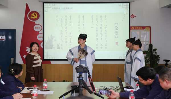 活动现场,与会人员回顾了自己工作以来的历程,做了一次自我反省。在项目部自制MV引领下,参会人员齐唱歌曲《公民道德歌》,观看道德模范事迹视频,并通过青年员工自导自演的古今穿越情景剧演绎《论语》经典、讲述“陕投好人”邢进故事等环节,引导干部职工提高思想道德、职业道德和家庭美德。