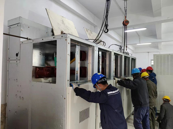 保运最重要,寒风何所惧。时间一分一秒地过去,不知不觉已是傍晚时分,检修工作也进入最关键的时刻。6KV输煤段配电柜吊装前,检修小组做了充足的准备,但即便如此,吊装过程中小组成员还是慎之又慎,不断相互提醒,一丝一毫地移动着配电柜,生怕稍有不慎造成损坏。配电柜终于吊装成功,大家长舒一口气,紧皱的眉头也舒展开来。地基处理完成后,工作人员第一时间完成配电柜安装,按时按点、保质保量完成了厂外6KV输煤段配电柜沉降检修工作。
