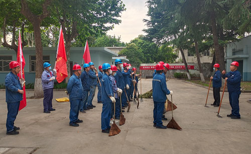 吉木萨尔项目部党支部组织“党员突击队”,利用下班时间清理厂区主干道两侧绿化带内垃圾,处理了绿化带及道路施工的遗留问题,美化环境的同时排查安全隐患,迎接中电联专家组检查。