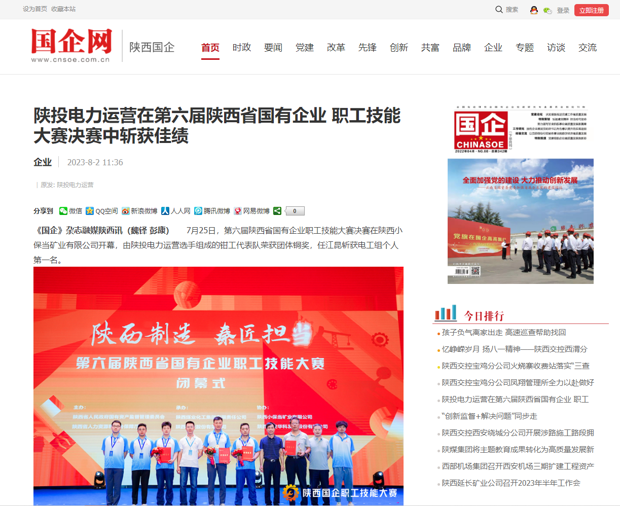 7月25日,第六届陕西省国有企业职工技能大赛决赛在陕西小保当矿业有限公司开幕,公司选手组成的陕投集团代表队荣获钳工组团体铜奖,任江昆斩获电工组个人第一名。