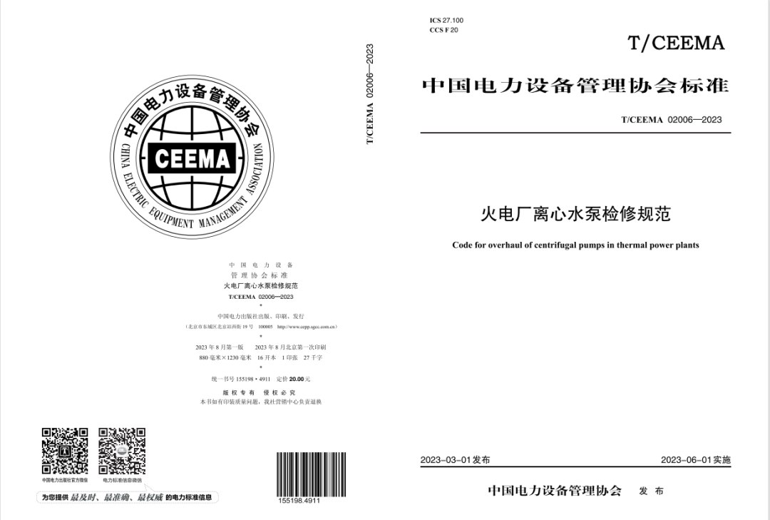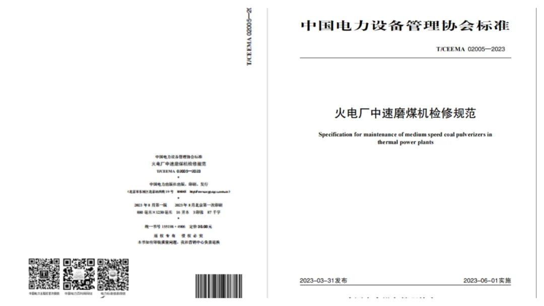 其中,公司主编的《火电厂中速磨煤机检修规范》规定了火力发电厂中速磨煤机检修规范,适用于燃煤机组 ZGM123 系列中速辊式磨煤机检修、检查质量要求和工艺管理等内容,通过规范维护、检修、工艺主要部件拆卸与安装,将“预防”和“检查”结合起来,确保不发生因检查不到位造成的磨煤机磨损、振动停运现象。《火电厂离心水泵检修规范》适用于火电企业常用多级、单级离心泵的日常维护和检修质量标准、试运验收及故障处理等相关内容。