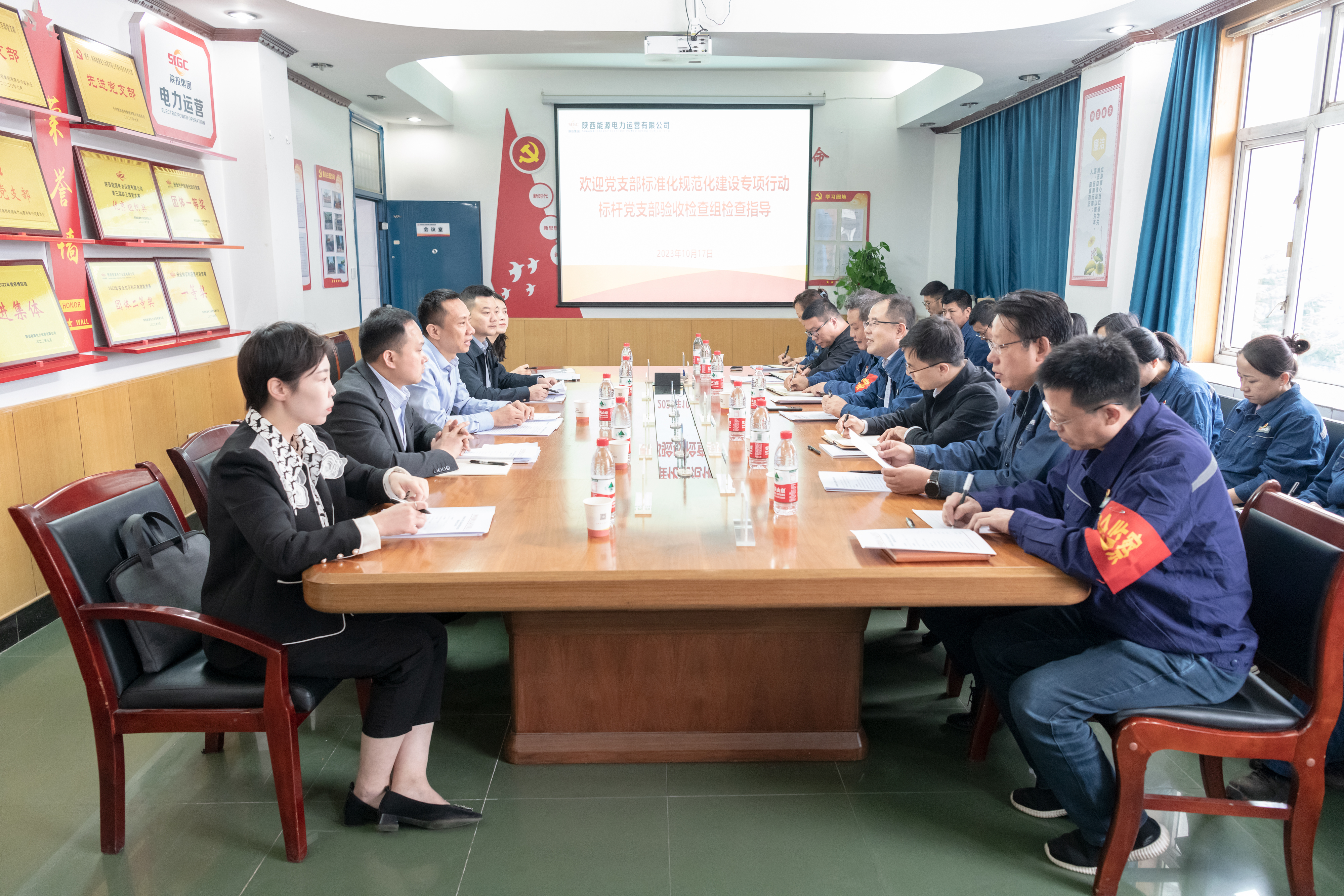 公司党委书记、董事长毛冬红介绍了电力运营公司党的建设、工作成效及业务发展等基本情况。渭河项目部党支部书记喻继峰汇报了支部标准化规范化建设创建工作开展情况。