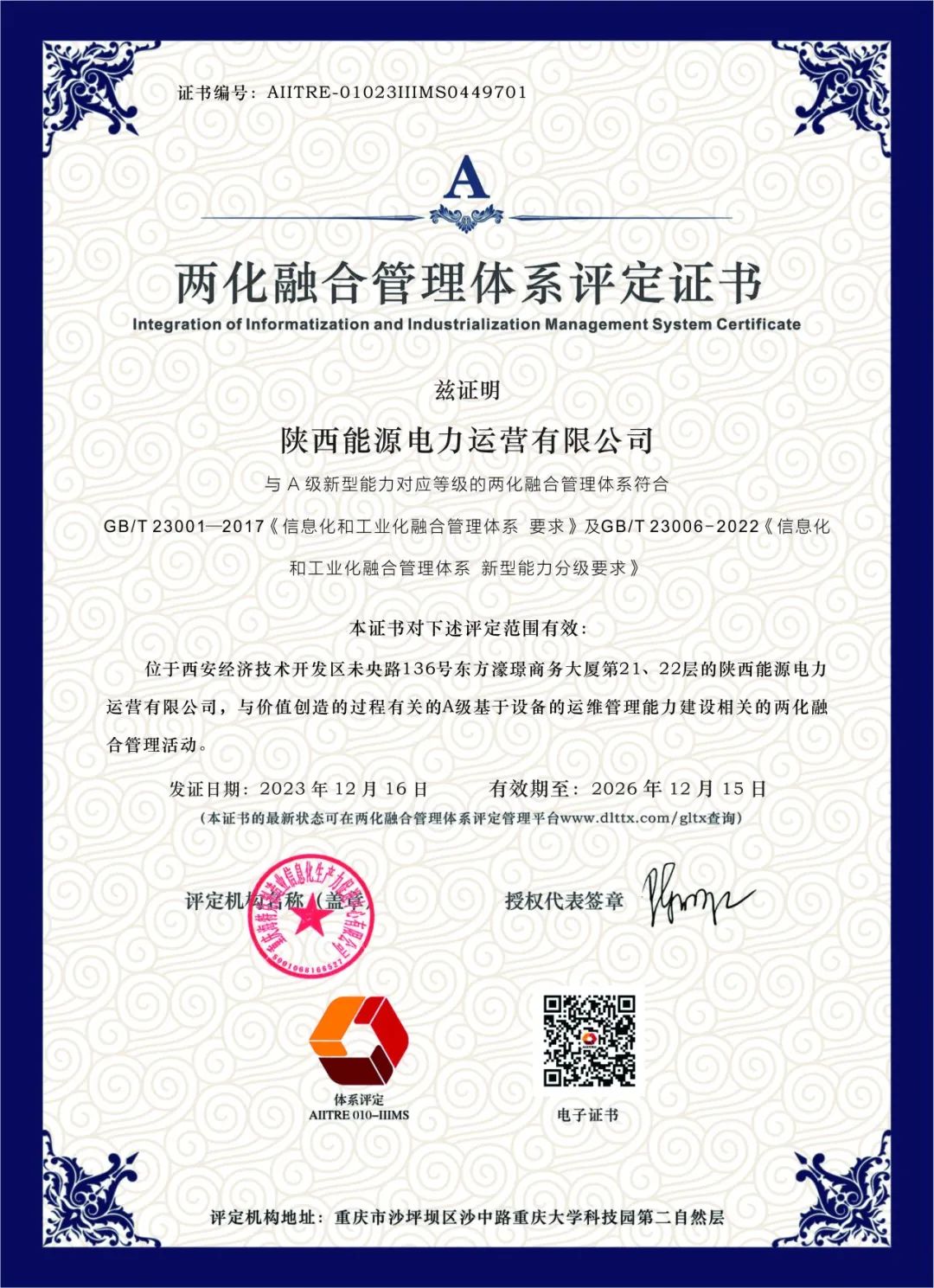 近日,公司成功获得两化融合管理体系评定证书,标志着企业在信息化和工业化的深度融合方面取得了重大突破。