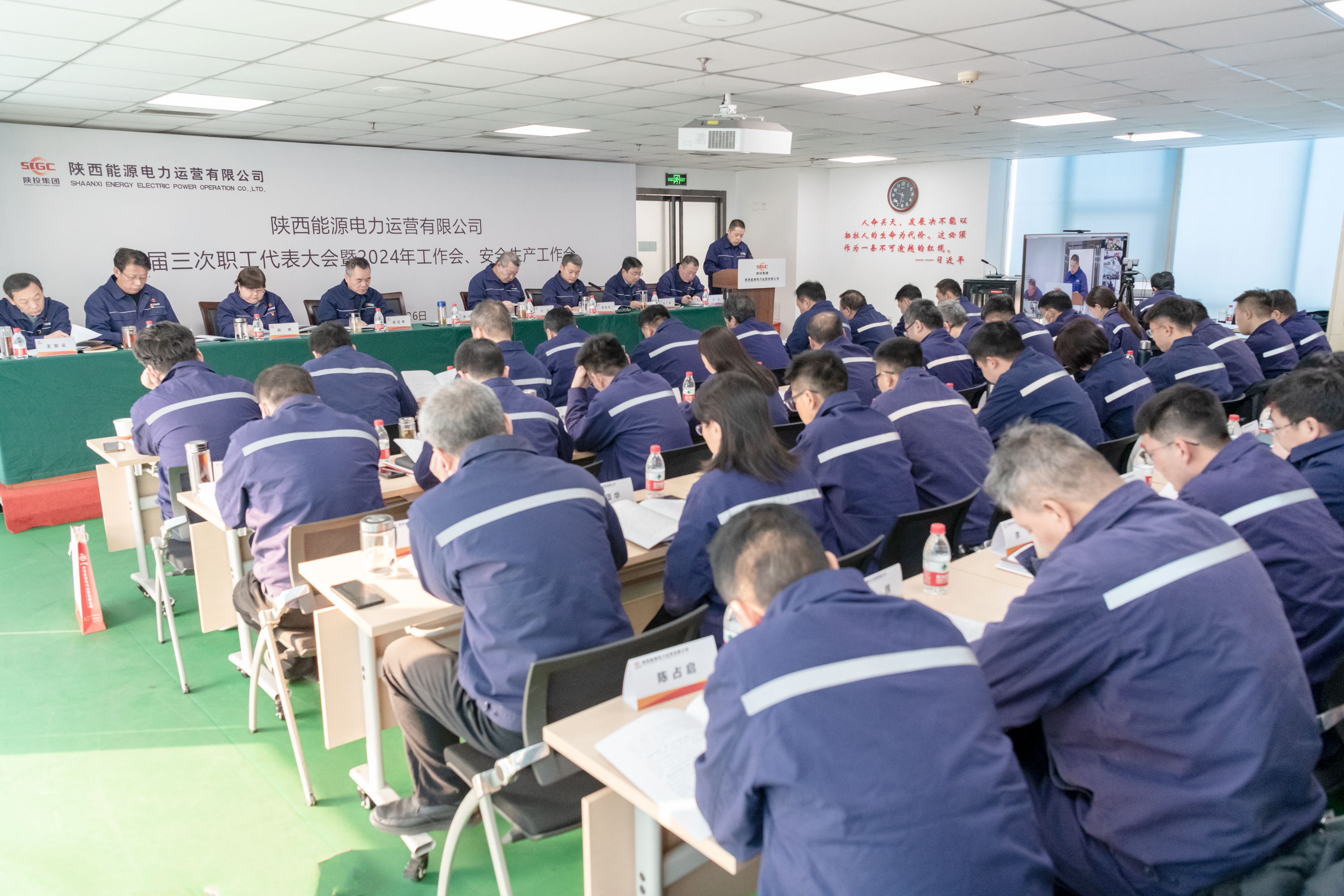 勇毅笃行谋发展,奋楫争先促创新。1月26日,公司召开一届三次职工代表大会暨2024年工作会、安全生产工作会。财务总监郑维传达了集团二届二次职工代表大会暨2024年工作会、安全生产工作会精神,纪委书记任广军传达陕西能源2024年安全生产工作会及2023年度生产经营工作会精神,副总经理武红幸作2024年安全生产专题报告,副总经理雷喜鸣主持正式会议,工会主席韩宏友主持预备会议。