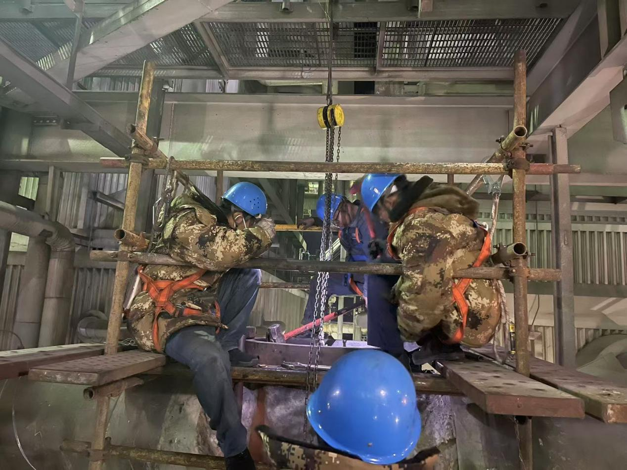 2024年12月24日,美鑫锦阳电厂#1机紧急停机。美鑫项目部立即组织人员全面排查,发现#1炉后竖井低再区域炉管泄漏。项目部迅速响应,第一时间召开抢修部署会,渭河、黄陵、富县、麟北等兄弟项目部立刻派出精兵强将,火速支援。