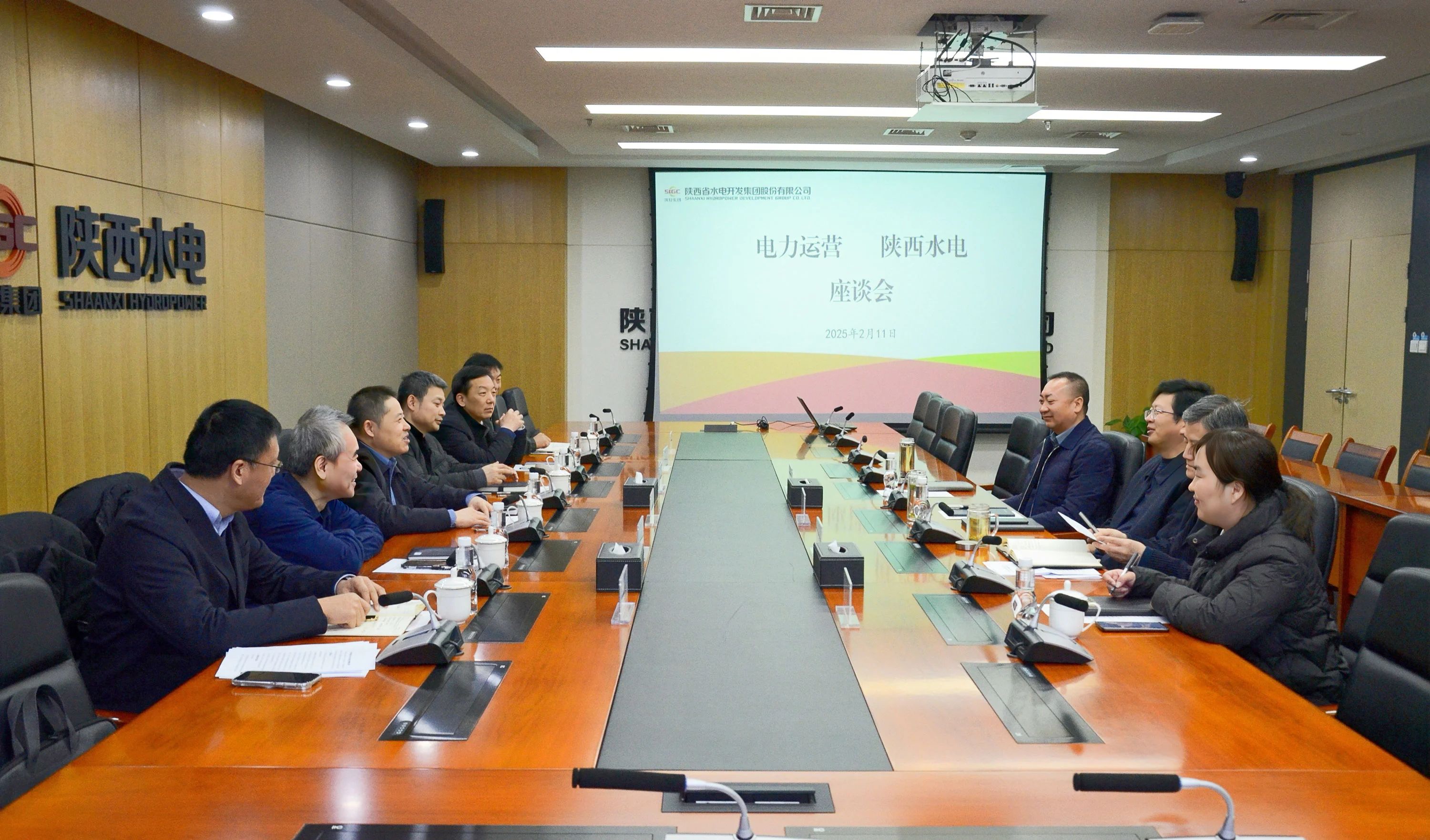 2月11日,公司党委书记、董事长张小锋,总经理雷喜鸣带队前往陕西省水电开发集团股份有限公司座谈交流,双方就进一步深化合作进行沟通洽谈。水电股份党委书记、董事长李海鹏,副总经理曹驰、张继光参加座谈。