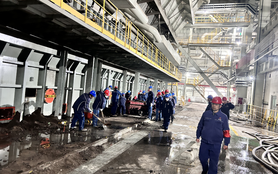 富县项目部立即组织人员奔赴现场,排查原因,检查发现捞渣机右侧齿轮箱发生故障。为确保机组满负荷出力,项目部紧急组织人员连续排渣,制定消防水远程冲渣、降温后集中清理方案,人员分班连续作业,经过连续60个小时的全力奋战,共清理事故放渣500余吨,有效缓解了渣井压力,为更换备品备件争取了宝贵时间。
