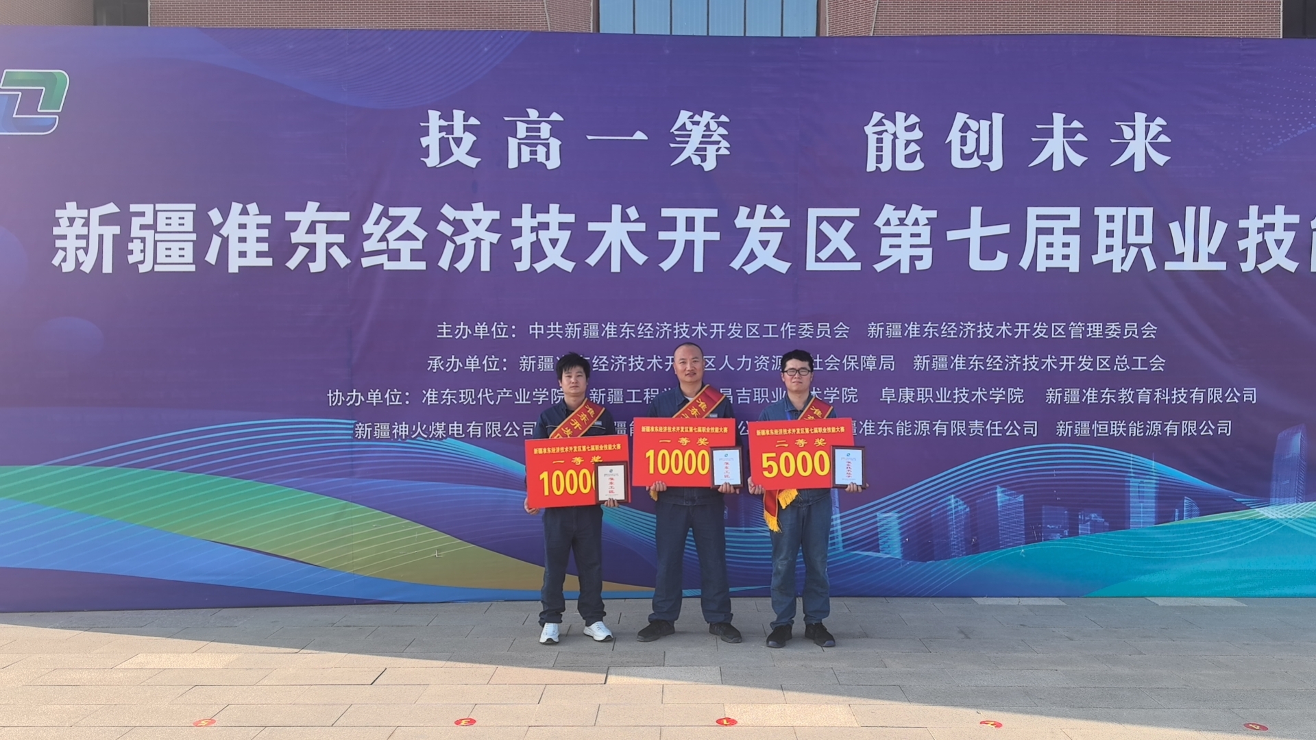 6月12日,在新疆准东经济技术开发区第七届职工技能大赛中,新疆分公司杨成武、张程包揽叉车组、焊工组冠军,荣膺大赛“准东工匠”称号;王毅飞勇夺钳工组亚军,被授予“准东技术能手”;闫玉婷在行车操作项目中跻身前十。
