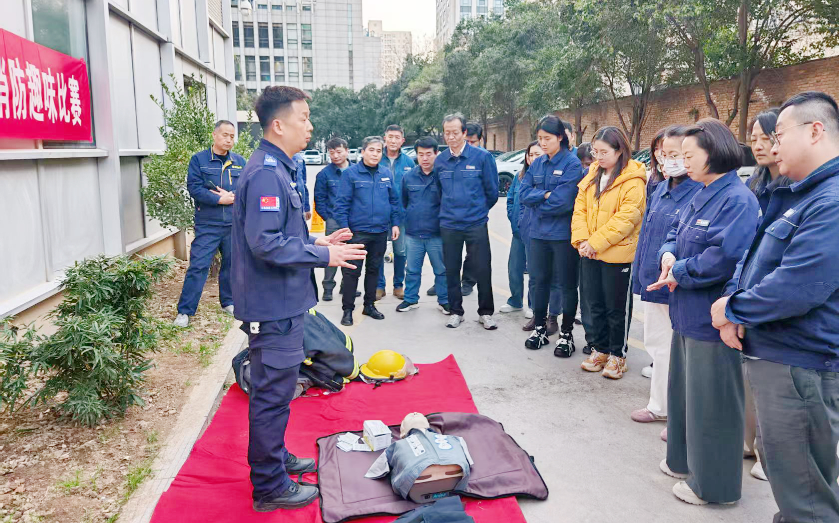 压轴登场的“消防趣味运动会”将活动推向了高潮。运动会设置了消防服快速穿戴、消防水带精准连接、急救技能演示、负重接力跑等多个兼具趣味性与实用性的项目,安排员工在受训前后分别进行实操对比,形成了鲜明反差。
