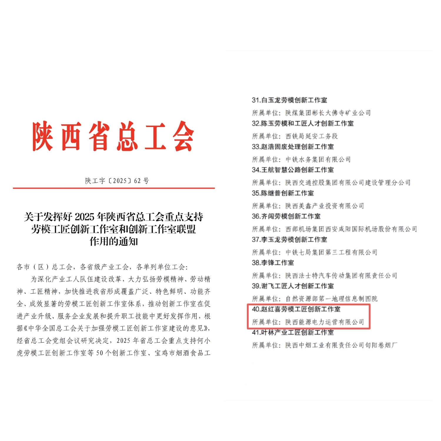 近日,公司“赵红喜劳模工匠创新工作室”成功获评2025年陕西省总工会重点支持劳模工匠创新工作室,并获3万元专项资金支持,成为集团内唯一获此荣誉的工作室。