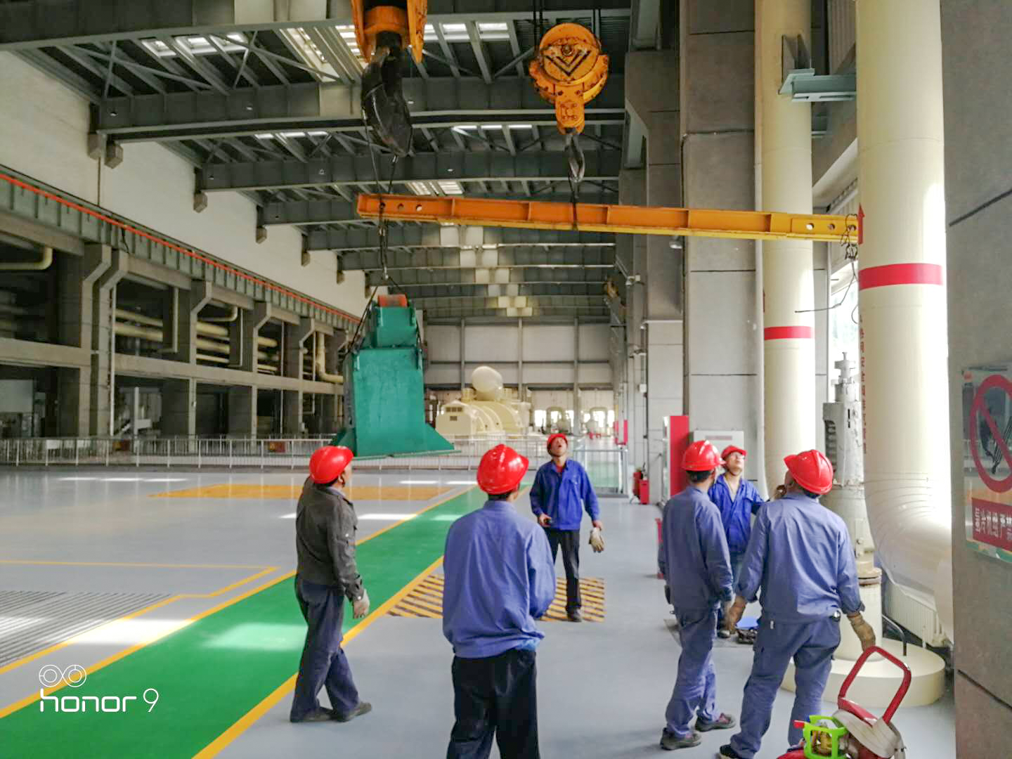 近期,在麟电#1、2机组五段抽汽安全阀相互移位的工作中,作业人员在没有起吊点的情况下,仔细勘察作业场后,果断提出利用行车大小钩错开升降、小车横纵伸缩的杠杆原理实施起吊的方案。全体工作人员从杠杆的旋转角度、受力分析,到配重的选择都进过了严密的计算和推演,最终成功实现了两台安全阀在不落地状态下的拆卸、安装等相互换位工作。(程海峰)