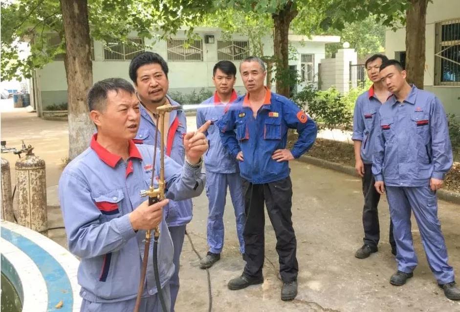 7月15日,金属试验中心举行内部气割及焊接培训开幕式。开幕式现场,副主任王声岐率先示范了装置氧气、乙炔表,焊工杨建演示了气割操作方法,讲解了应注意的安全问题,现场学习气氛浓厚、热烈。