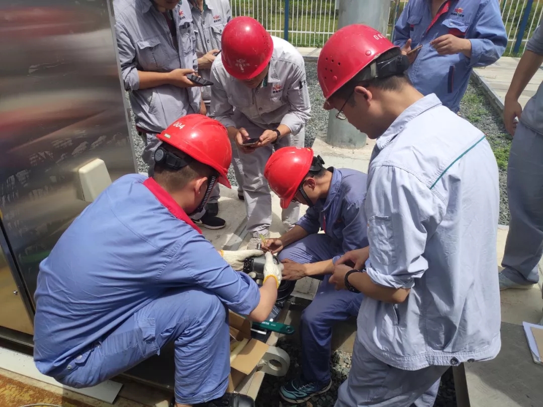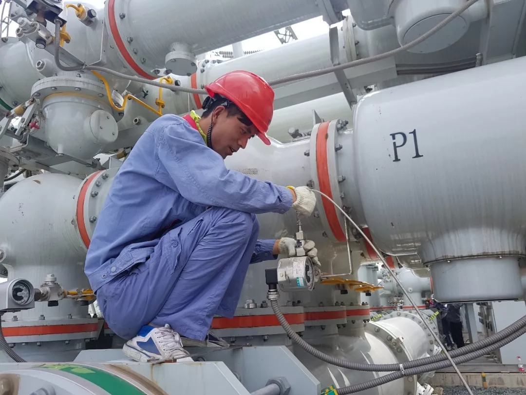 7月22日,电气试验中心人员赶赴商洛发电公司,利用新购置的德国威卡气体密度继电器校验仪和气体微水高精度测量仪对其在装的GIS(气体绝缘金属封闭开关设备)气室进行SF6(六氟化硫)密度继电器校验、微水测试以及气体组分含量测试等试验。面对新进的精密仪器,试验人员边学习,边摸索,严格遵循国家标准和操作规程的检测项目和周期,逐一对设备进行试验,并对结果进行分析比对。