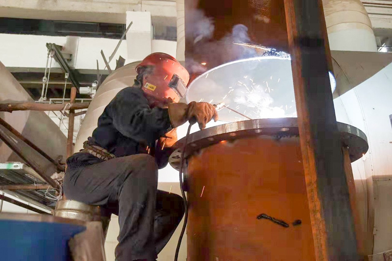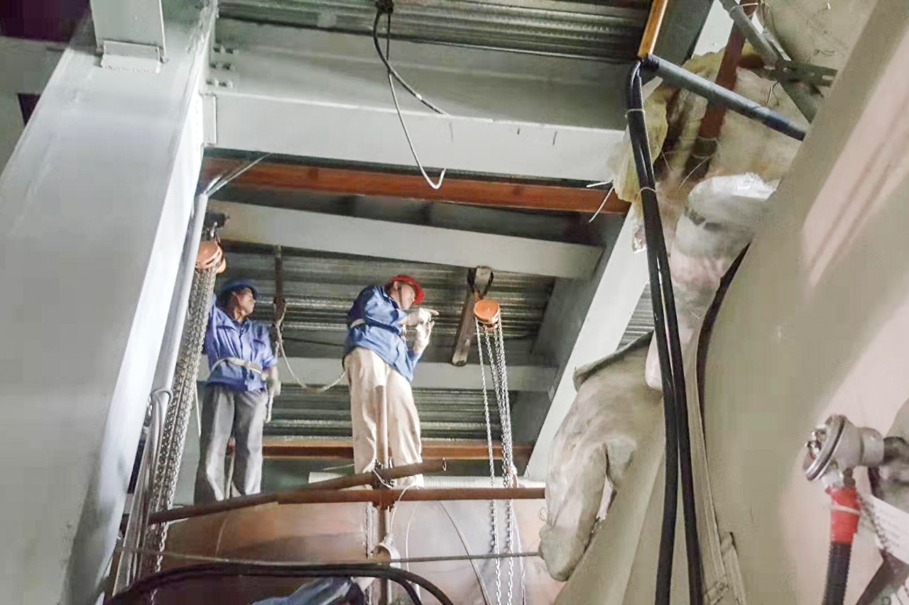 尖峰加热器水侧加装出、入口门是此次大修的重点工作,需要在外径920MM的管道上进行断口、制口,再将超过半吨重的阀门安装到位,多工种交叉作业,对安全和技术要求极高,工作难度极大。为此,项目部成立专门小组负责现场技术、安全工作,以便随时掌握施工进展,及时处理各种应急情况。目前,此项工作正在紧张有序进行当中。