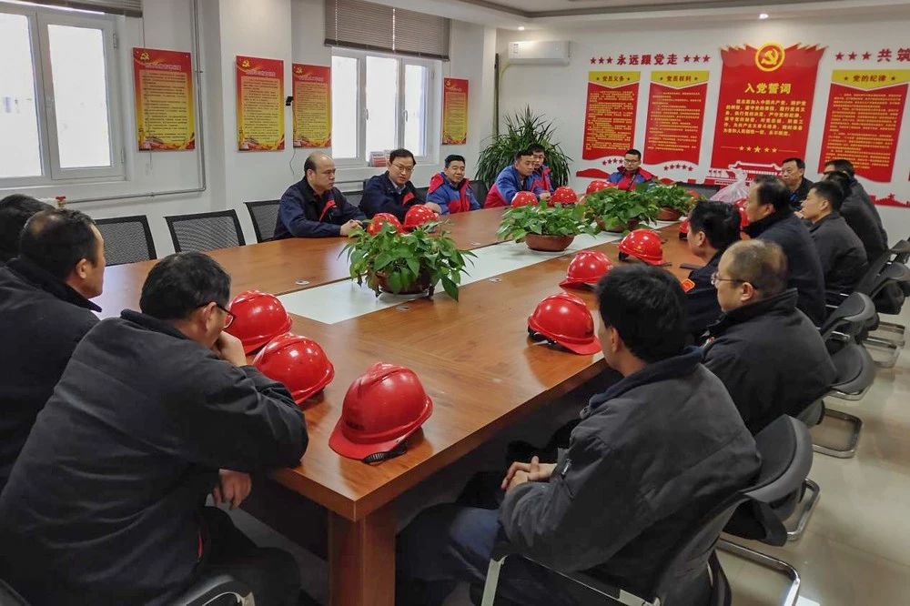 1月1日,新年伊始,赵石畔煤电公司总经理王学民一行来赵石畔项目部,交流指导工作,看望慰问节日期间坚守一线的干部职工。