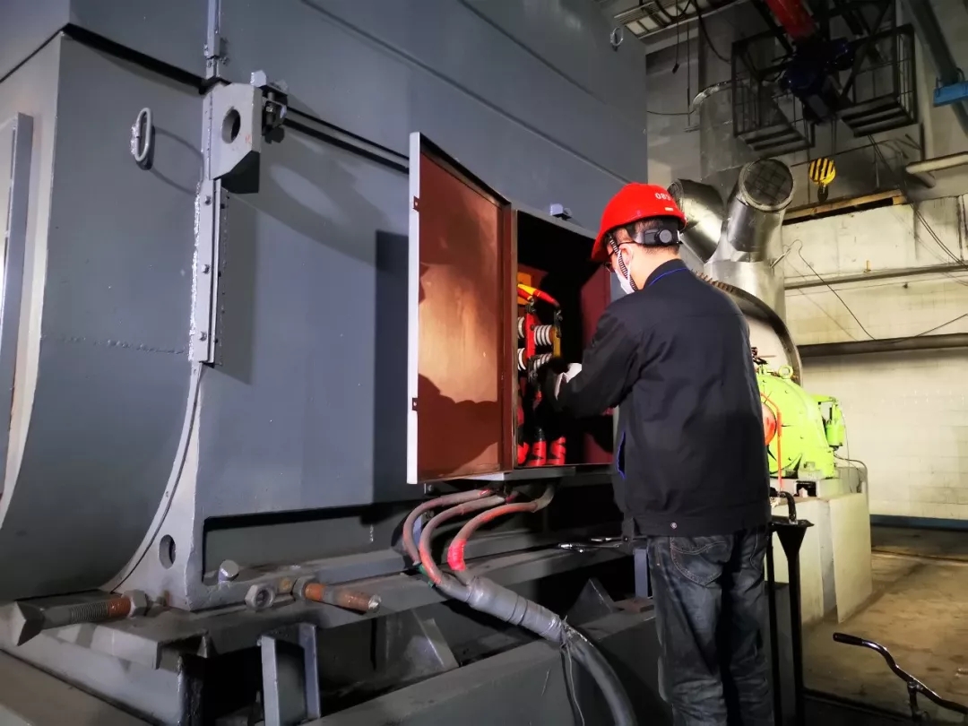 2月3日上午10:35,我在#5炉检修现场,拆除动力电源线。——渭河项目部机务队动力班马建