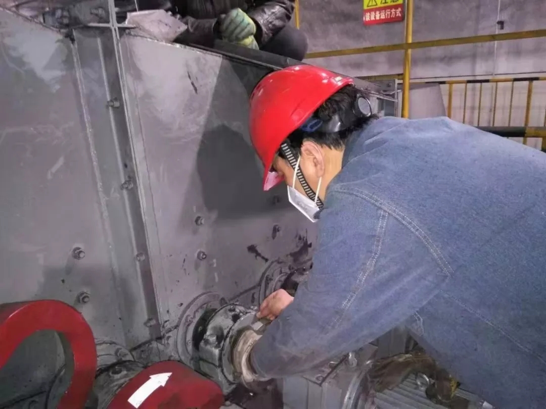 2月3日16:20,我在#5炉检修现场,支援丁磨煤机抢修工作。——渭河项目部机务队主机班班长詹泾永