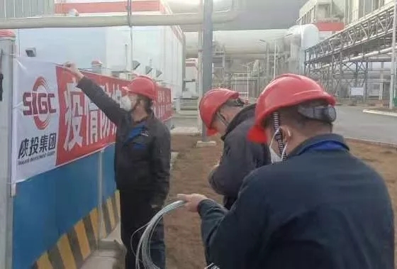 2月3日14:10,我们在生产现场悬挂疫情防控标语。——麟北项目部综合班
