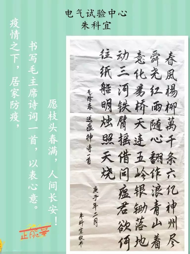 疫情之下,居家防疫,书写毛主席诗词一首,以表心意。愿枝头春满,人间长安!