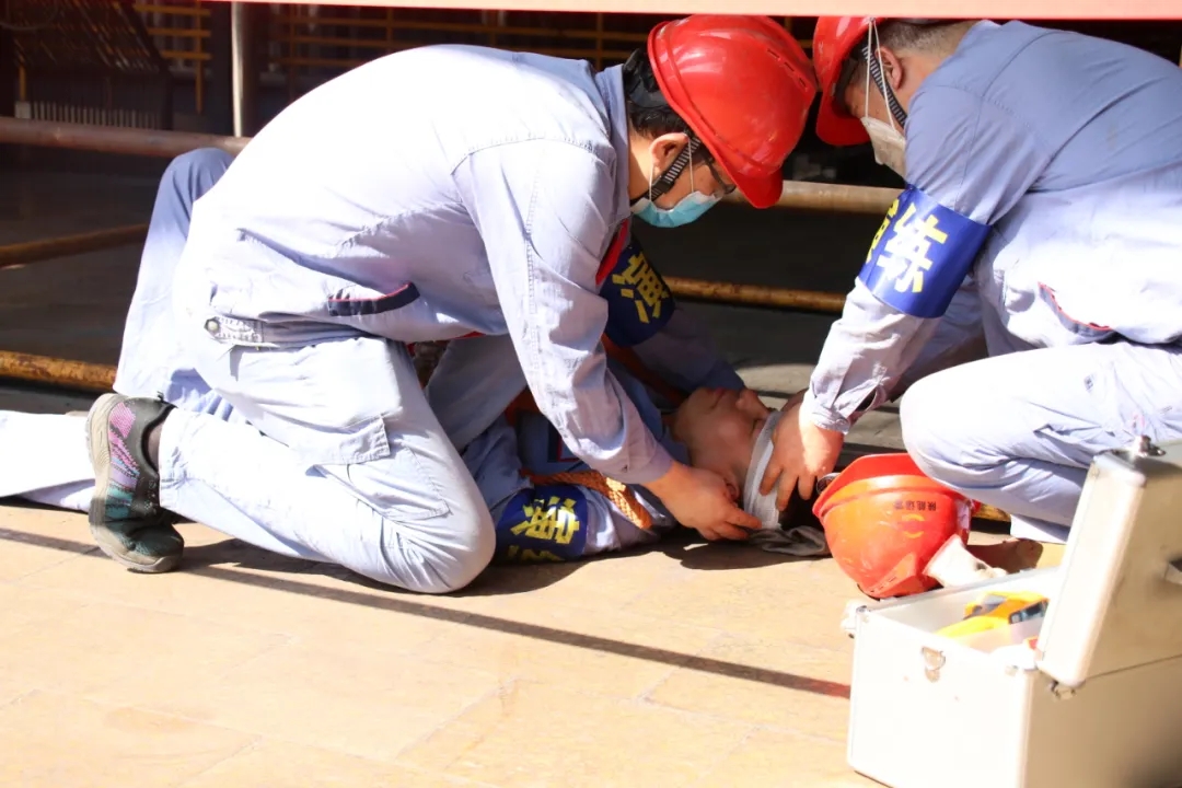 演练过程中,职工发生触电及高处坠落事故,项目部立即启动应急预案,救援人员第一时间赶至现场,对受伤人员进行紧急处理,并及时联系专业医护人员赶赴现场进行救援。
