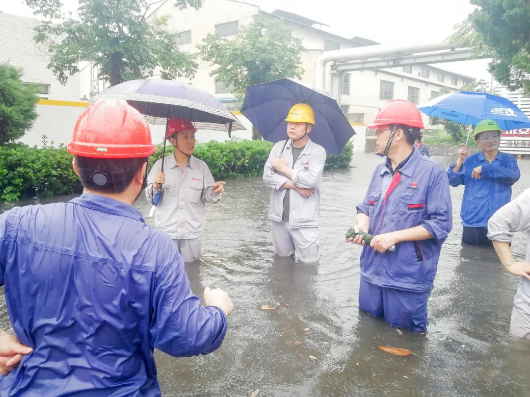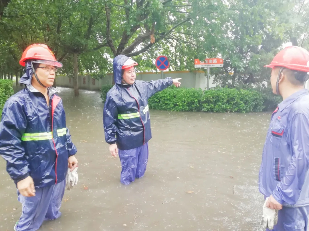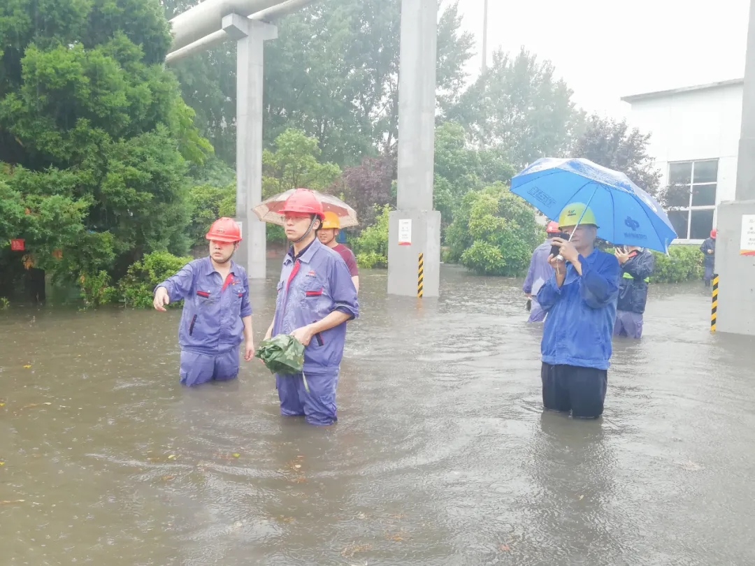 瓢泼大雨中,燃输区域瞬间水深超过一米,项目部应急小组成员来不及换上雨衣雨鞋,就跳入齐腰深的积水中,排查险情,疏通水道。