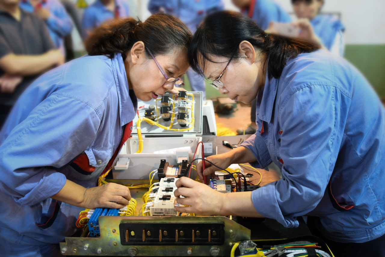 在电气二次配线赛场上,选手们参照图纸剪线、剥线、接线,量线,每一个眼神都专业专注,每一个环节都力求精益求精。