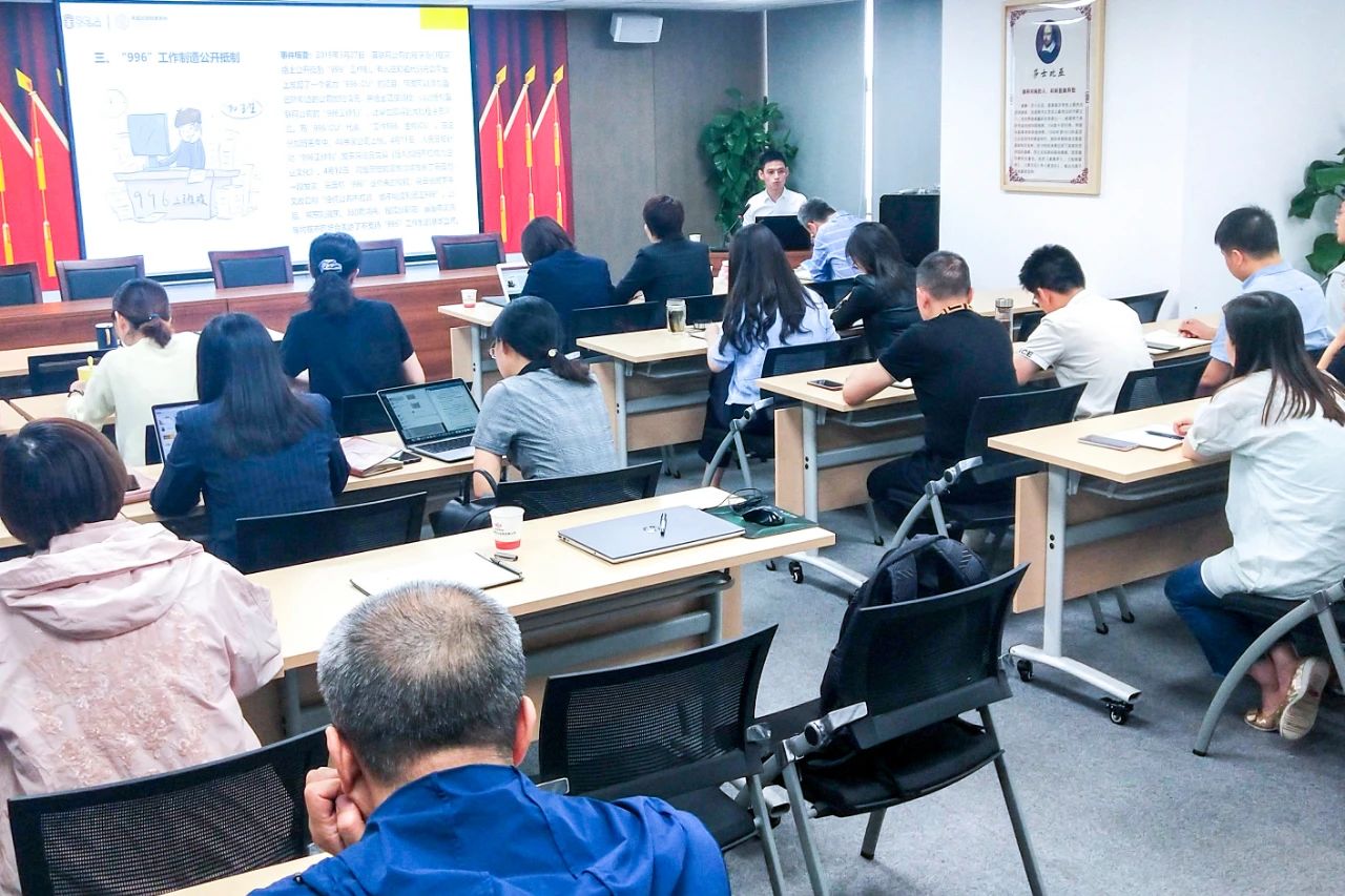8月19日,公司特邀陕西永嘉信律师事务所吉泽伟律师,以视频会议方式,对各项目部、各试验中心、机关各部室负责人及公司人事业务人员进行了人力资源管理培训。
