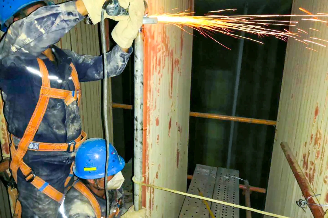 抢修现场,全体人员冒着炉膛内40余度的高温和弥漫的灰尘,加班加点开展工作,切割、打磨每一道工序都精益求精,制口、对口每一项工作都一丝不苟。抢修期间,安技办和锅炉专业全程参与,并带领大家检查出了炉管内有钢筋等异物的重大缺陷,彻底解决了炉管长期超温的安全隐患。